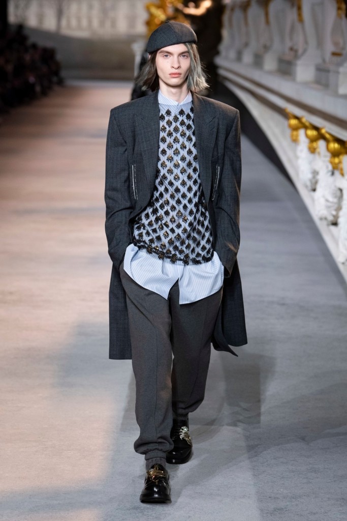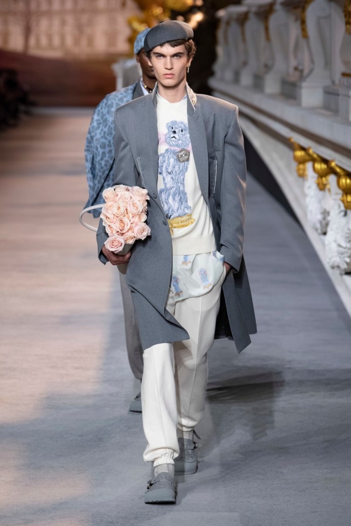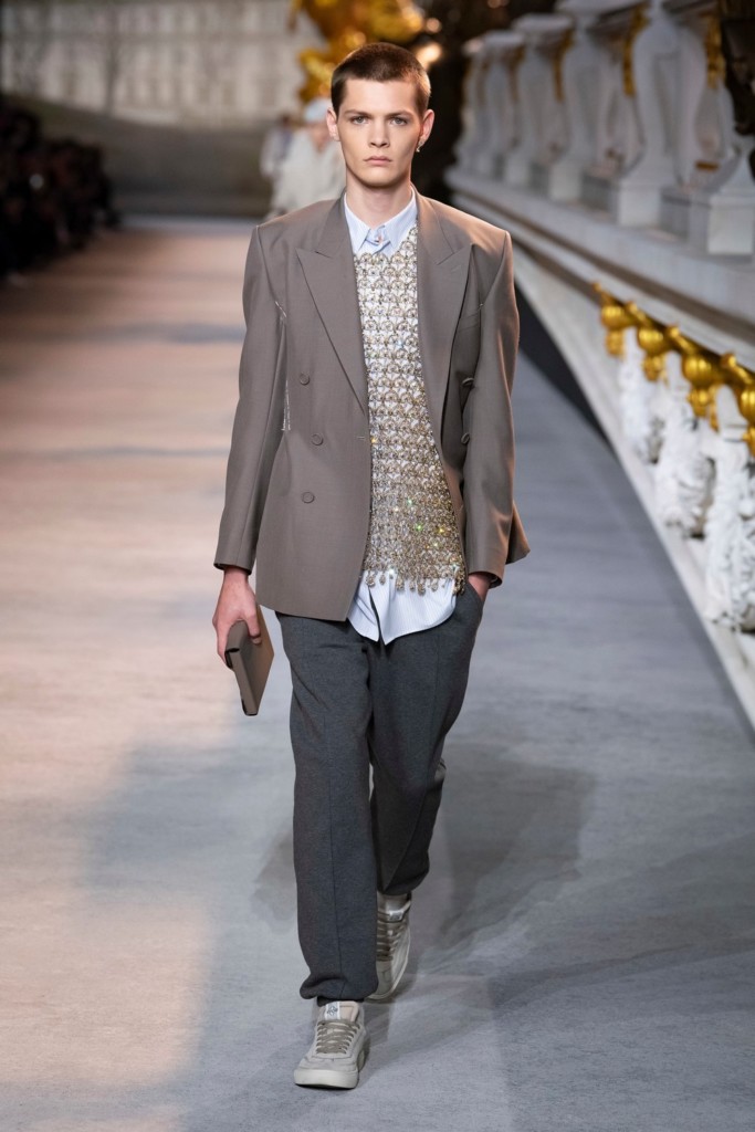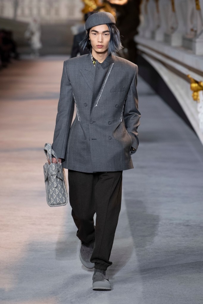 Quem assistiu à apresentação de inverno 2022 da grife, viu o trabalho delicado que Jones criou ao revisitar a silhueta do New Look, estilo eternizado por Dior, que foi criado em 1947 e que apostava em uma silhueta mais elegante, sensual e feminino, para a coleção masculina da linha.