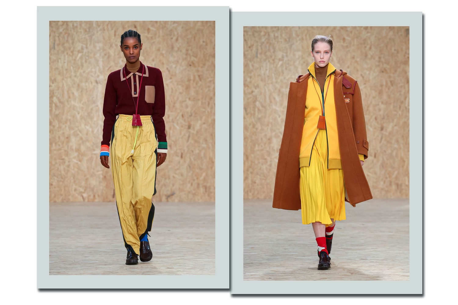 Entre looks color blocking, tons terrosos deram um tom outonal à coleção.