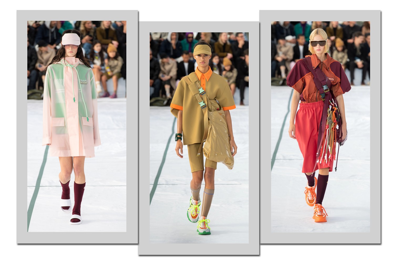 E há looks para agradar a todas as práticas: das clássicas saias plissadas de tênis ao estilo despojado dos skatistas e a preferência de materiais como o neoprene por esportistas aquáticos. Destaque para o trench coat que se dobra em uma bolsa carteiro, suprindo a necessidade da estilista por uma nova forma de guardar a peça na hora de pedalar.