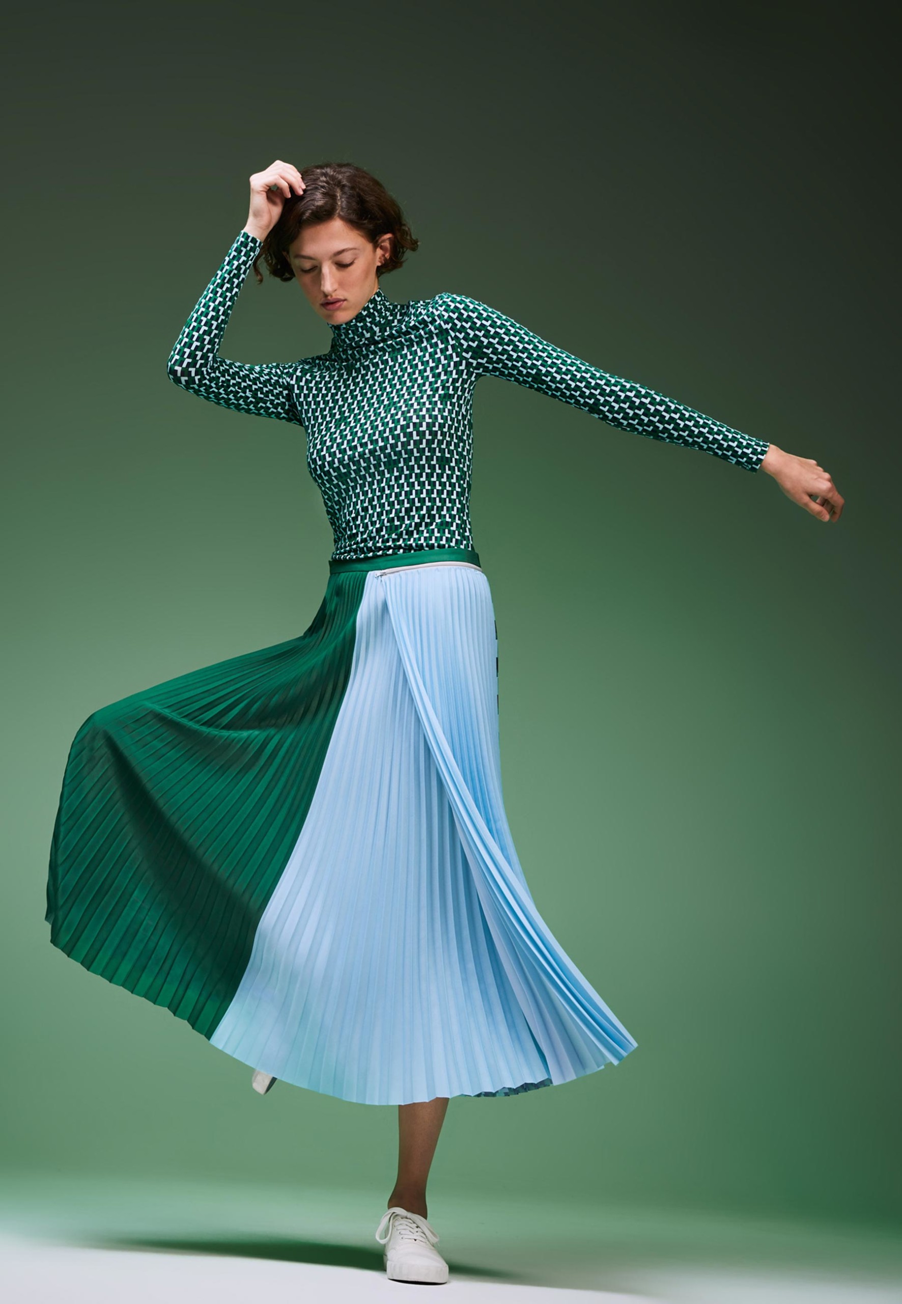 Os tradicionais verde e azul-marinho da Lacoste se juntam ao marrom das quadras, hortelã, céu azul, rosa-doce, laranja, limão e bronze em uma paleta viva e animada que aviva memórias de torneios de fim de semana, partidas amistosas e uniformes dos esportes.