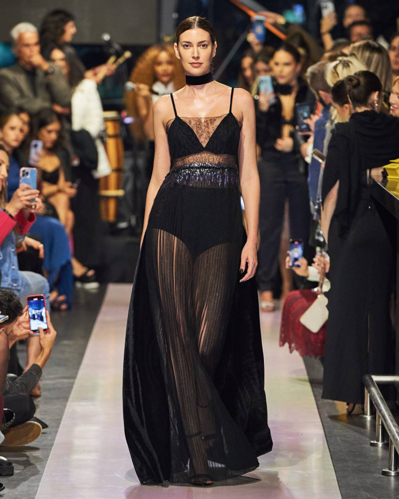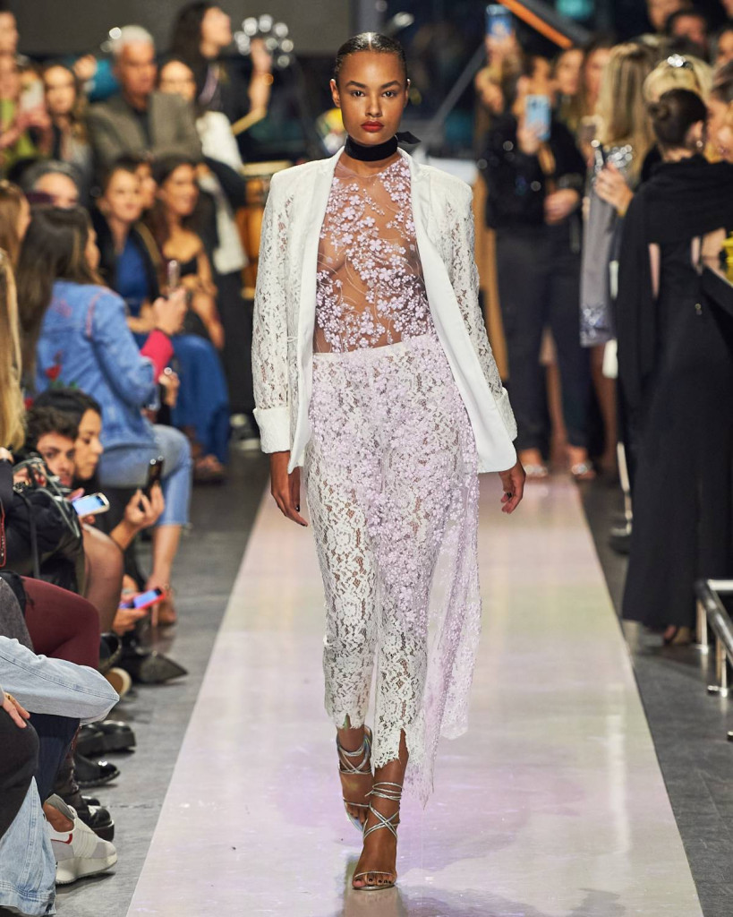 Todos os looks apresentados expressaram sua história, reunindo as características que constroem o estilo único da marca, como a renda, paetês, aplicações, transparência, brilhos e cristais.