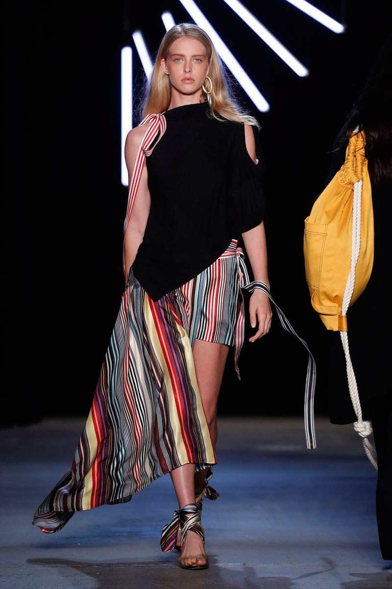 Listras estão sempre em alta quando o assunto é o look de verão, mas elas não precisam ser necessariamente linhas retas, horizontais ou verticais, daquelas tradicionais. No que depender da passarela de Nova York, a moda da estação mais quente do ano em 2019 será marcada pelas listras assimétricas.