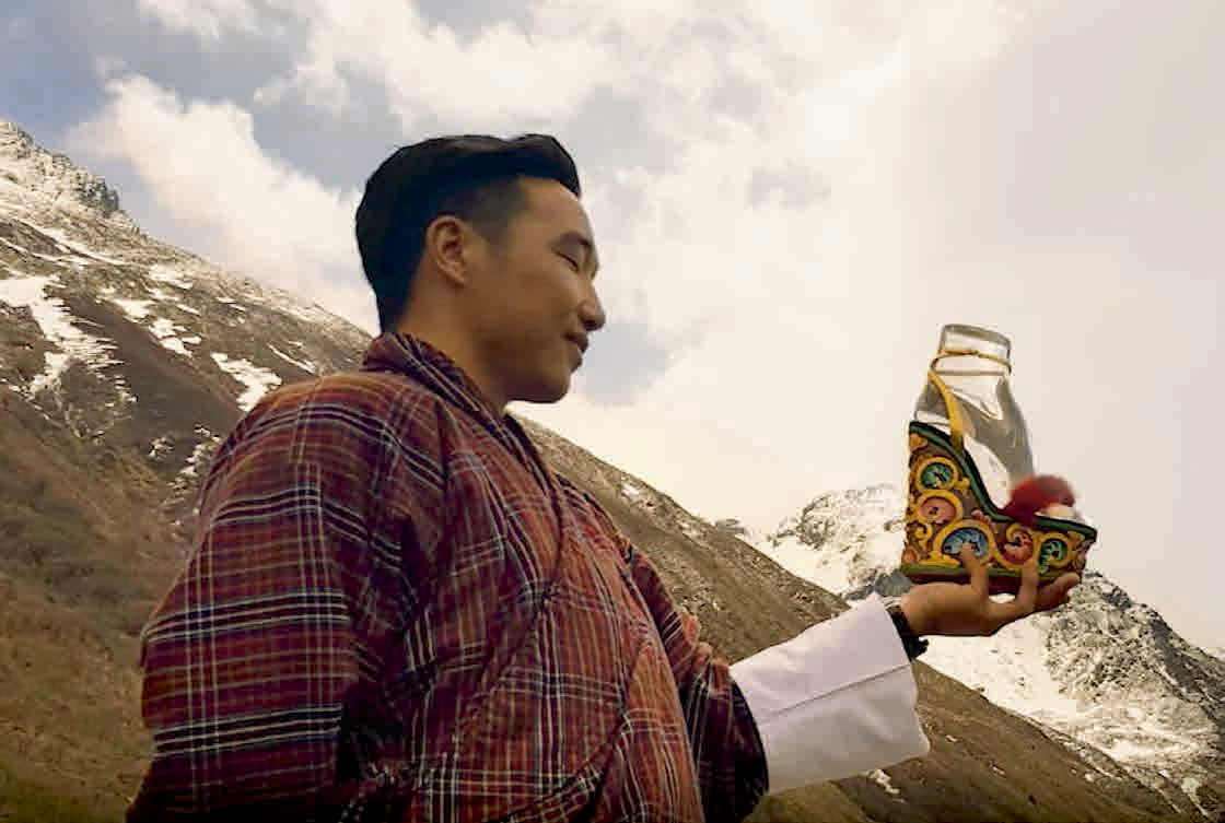 Uma amiga de Christian Louboutin ia se casar e, como presente, o designer quis fazer algo especial: um sapato para o dia da cerimônia. Como ela é budista, decidiu convocar artesãos do Instituto Nacional de Zorig Chusum, em Thimphu, no Butão, uma escola de artes e ofícios criada para preservar a cultura artesanal do país, que é famoso por enfatizar a felicidade.