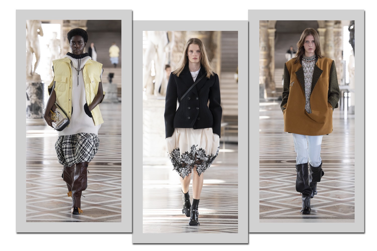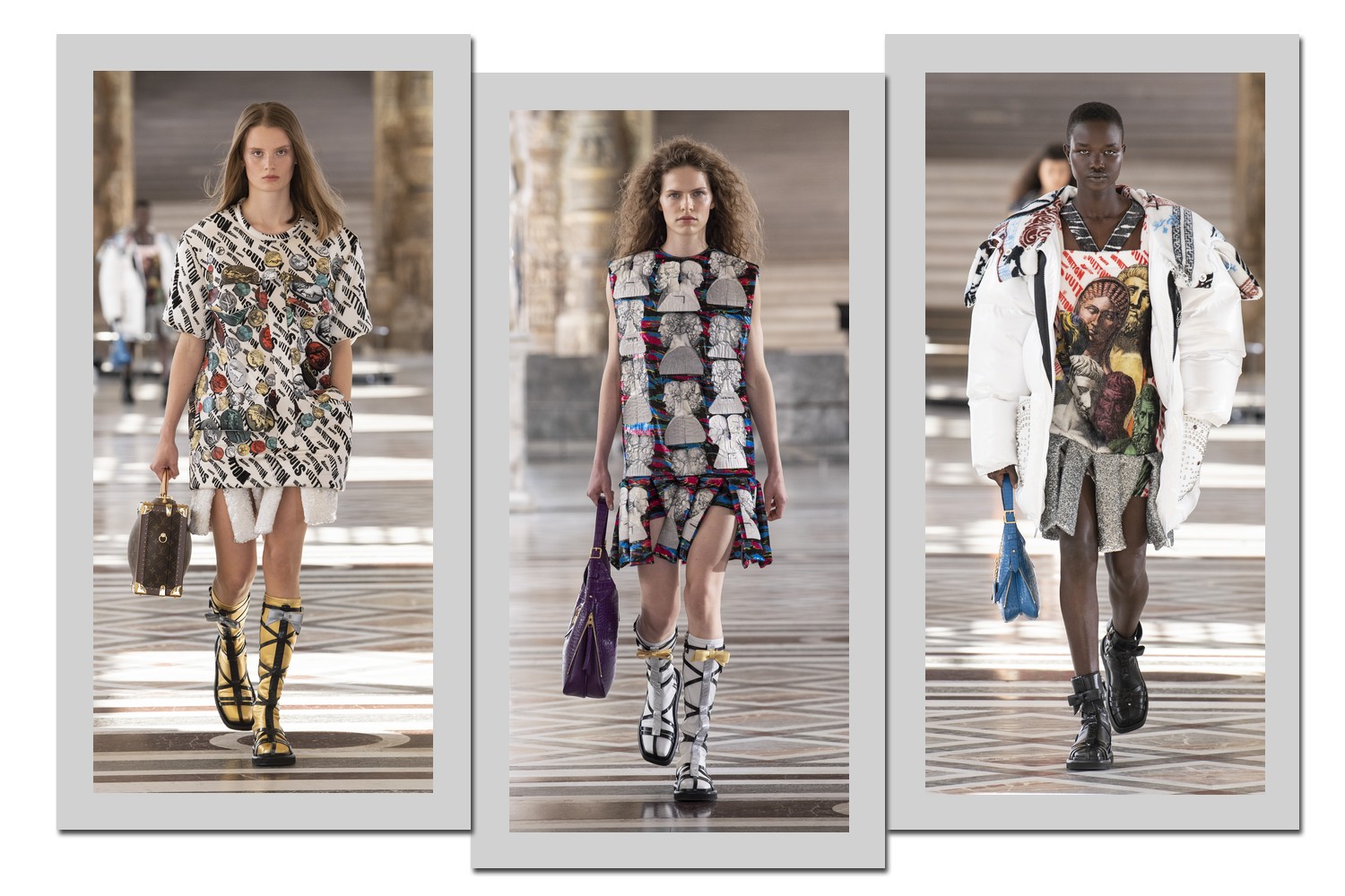 Em um desfile que aconteceu tendo o Louvre como cenário, as estampas foram as protagonistas. Imagens de famosas esculturas dividem espaço com logomania da marca e outros desenhos.