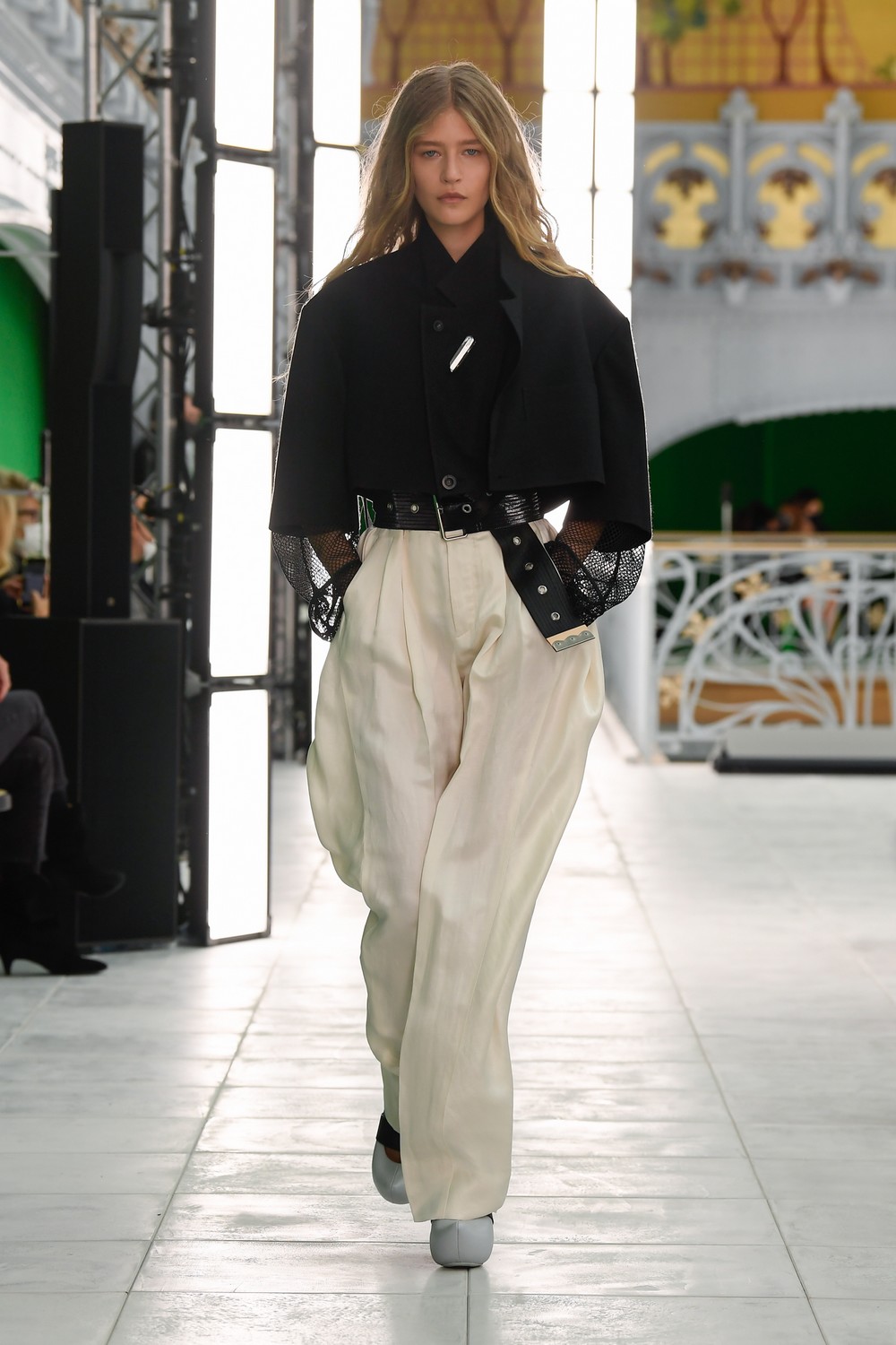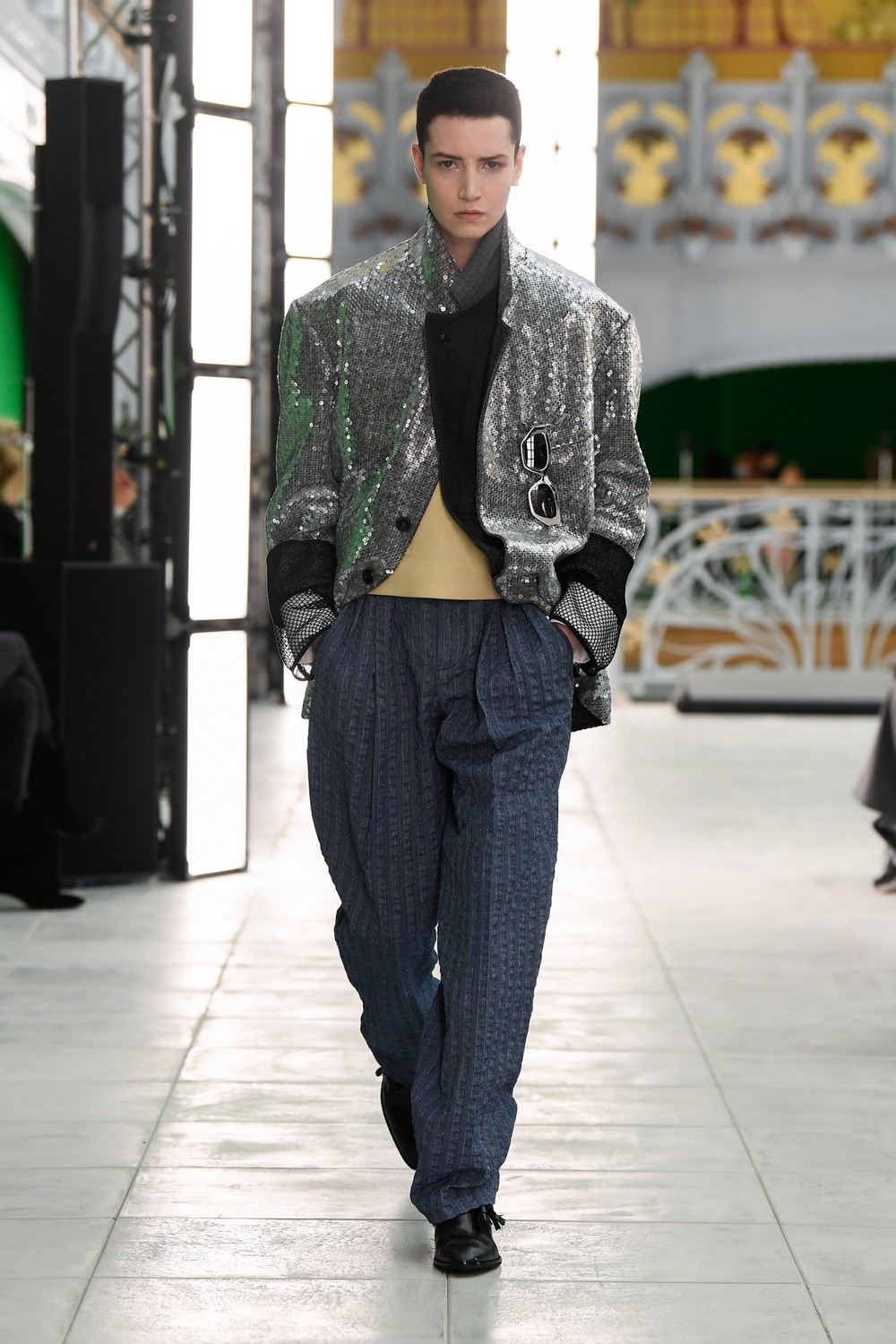 “Mais do que uma inspiração, é uma questão muito significativa de gênero. Estamos indo além da ideia básica de que uma mulher ganha poder cooptando o guarda-roupa masculino. Que espaço existe para uma categoria de roupas entre feminino e masculino? É um espaço em crescimento e seus contornos estão cada vez mais permeáveis. Estamos definindo um tipo de roupa que vive em uma zona não-binária. É algo fascinante a se considerar. O que é uma vestimenta não-binária? Inevitavelmente, é função do designer oferecer um ponto de vista”, afirma Nicolas Ghesquière.