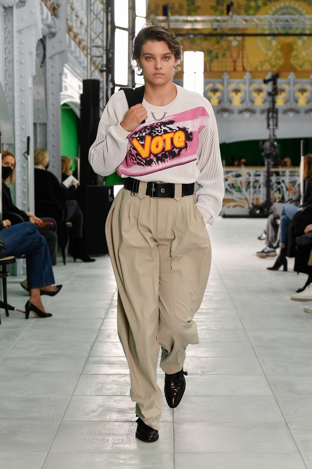 Seguindo um movimento iniciado nos Estados Unidos, que está às vésperas de sua eleição presidencial, a Louis Vuitton incentivou o voto responsável logo na abertura do desfile.