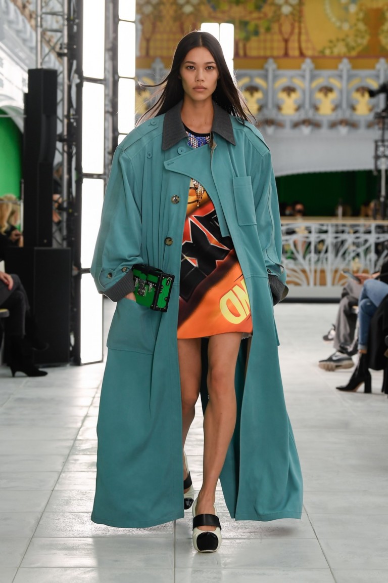 Abrindo o desfile com tom político e atual, uma camiseta com a estampa “VOTE” deixa claro também que correr das responsabilidades não é o caminho – precisamos agir. Calças amplificadas nas laterais por pregas são amarradas com largos cintos sugerindo proteção nesta corrida, assim como looks com microvestidos surgem com japonas oversized.