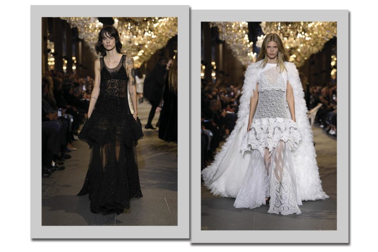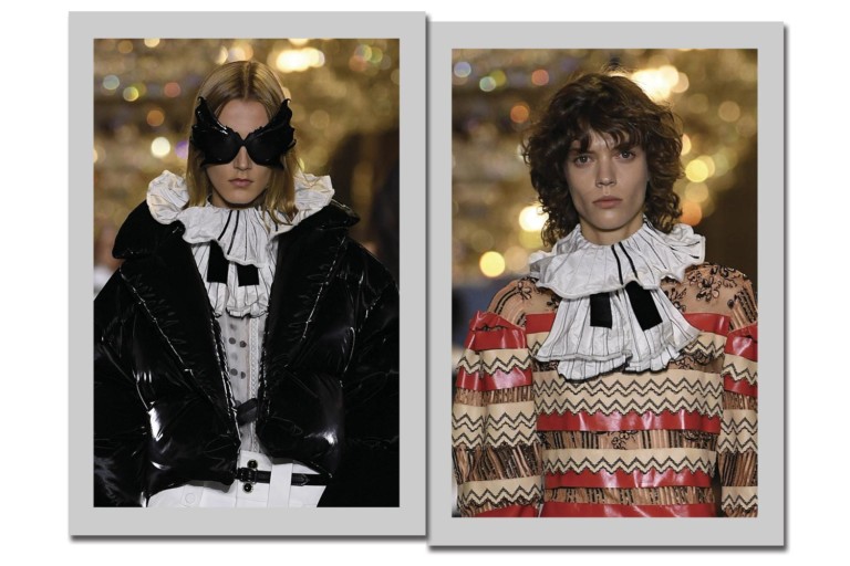 Vestidos com armações nas saias, máscaras de baile, óculos ultrafestivos, um grande baile contemporâneo. Rendas, plumas, paetês, caudas, petit pois e golas vitorianas misturados com alfaiataria oversized e sandálias smart de cetim para festejar o tão aguardado retorno das temporadas presenciais.