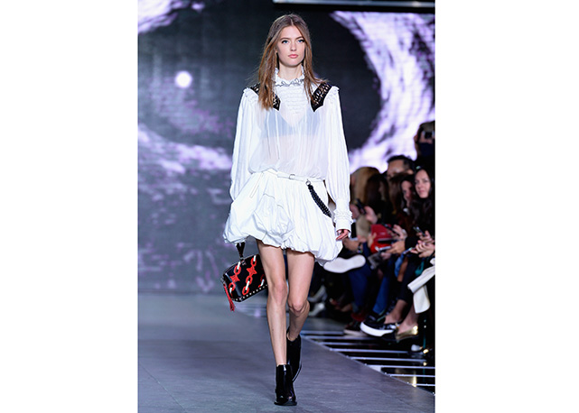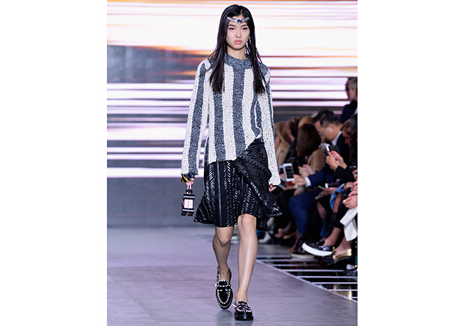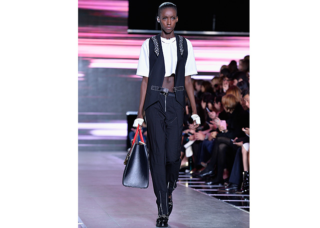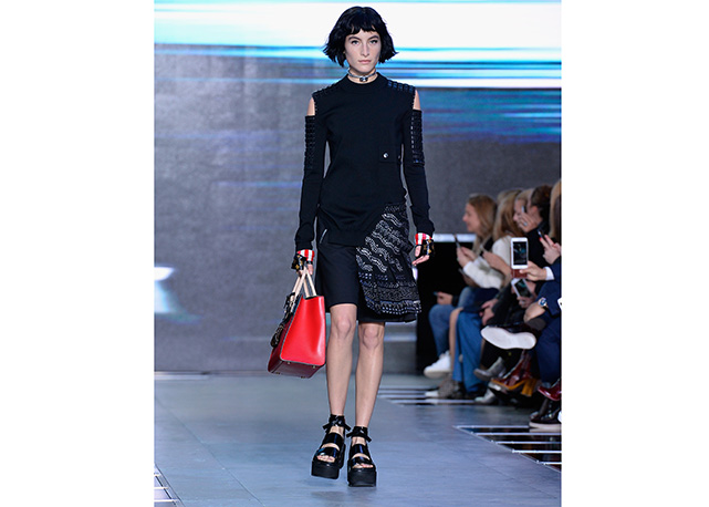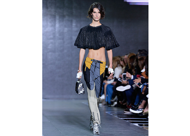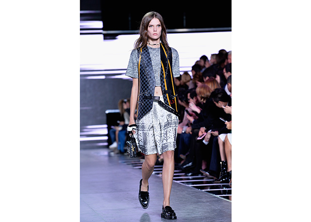 Bem-vinda ao futuro. Um futuro em alta-velocidade, digitalizado e feito de possibilidades. Assim começa o desfile da Louis Vuitton, com uma voz robótica anunciando “uma jornada às fronteiras da era digital”. E, se nos permite, às fronteiras da moda também. Inspirado em heroínas e guerreiras de videogames, Nicolas Ghesquière vai além na sua exploração de um novo guarda-roupa para mulher de hoje e a imagina como viajantes intergaláticas, meio punk, meio grunge, mas sempre real. Aqui elas vestem plataformas pesadas e kilts cobertos de tachas, jaquetas de couro repletas de recortes, calças e bermudas bikers com color block, regastas e camisetas teladas, macacões de seda de aspecto utilitário, longos vestidos com aplicações metálicas e a nova bolsa-desejo, num misto de saco com tote franjado.