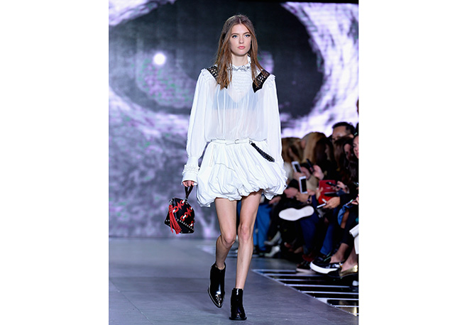 E assim, quando já nos víamos descrentes sobre a possibilidade de qualquer indício de novidade na moda, eis que no fim de um mês ininterrupto de desfile, somos impactados com nada além do novo. O novo que vem fantasiado de futurista, mas fala do aqui agora. Traz as camadas-tendências da temporada para muito além do importante jogo de transparências da estação. São sobreposições de referências e elementos dos mais diversos – o romantismo das mangas bufantes e golas altas de tempos passados, com a modernidade os padrões tipo grid de microchips, com a força das estruturas rígida em couro e arremates em metais; com a delicadeza e preciosismo do savoir-fare artesanal – que produzem algo totalmente novo em si só.