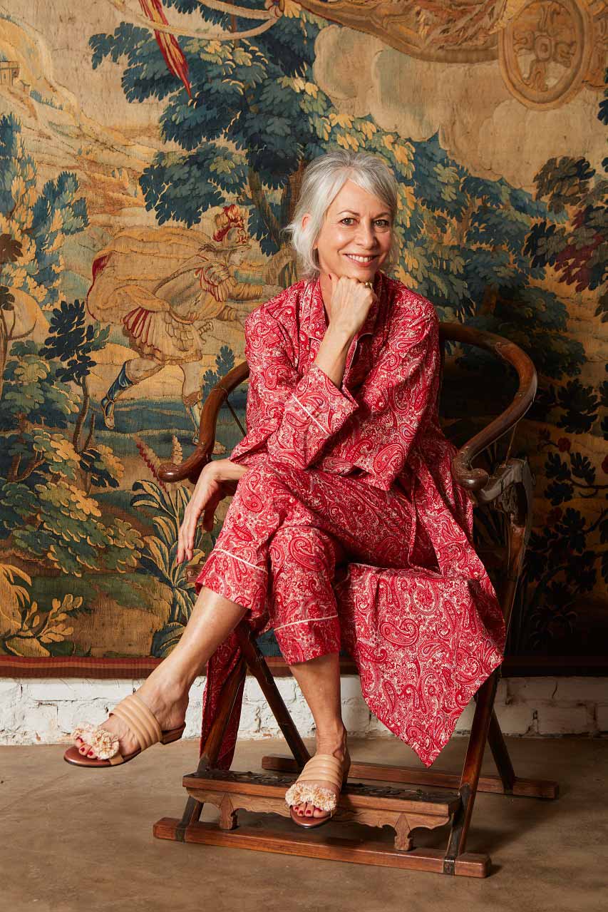 Criados pela dupla no Brasil e feitos na Índia, os pijamas e robes são de silk touch que não amassa e tem toque macio. “Desenvolvemos a modelagem aqui em São Paulo e mandamos fazer numa pequena fábrica da Índia, que deu muito certo com o padrão no nosso trabalho”, conta Carolina.