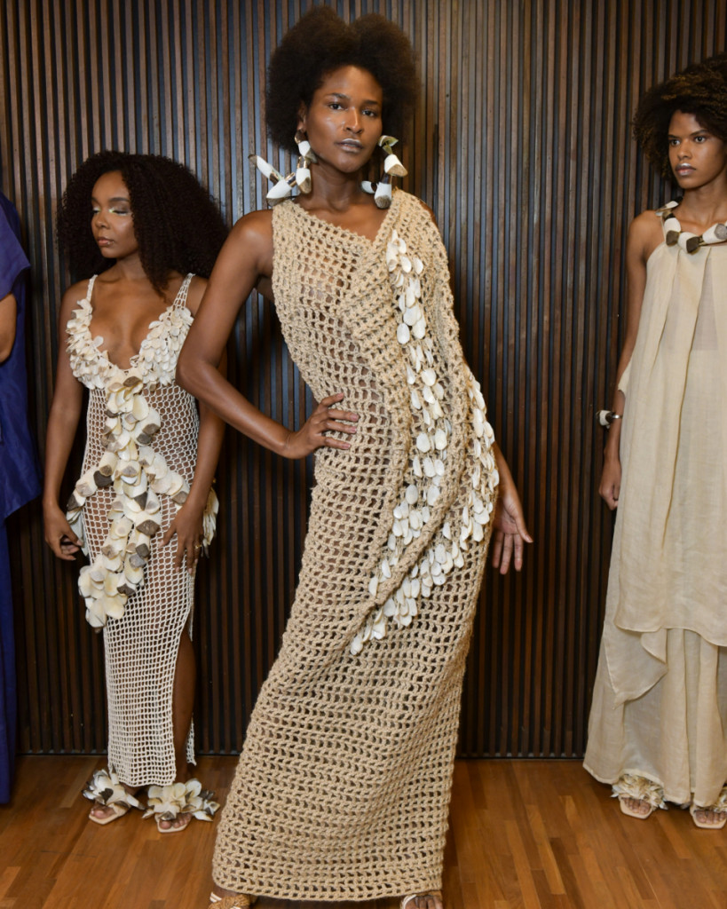 Em Fortaleza, Marina Bitu costura outra camada nesse mapa. Suas coleções aproximam rendas, bordados, crochês e tramas de artesãos nordestinos de uma linguagem contemporânea de moda autoral. Em algumas etapas, alunos do Senac entram no processo, conectando ensino técnico, pesquisa de território e prática de ateliê. O luxo, aqui, aparece no tempo da peça, no vínculo com quem produz e na permanência de ofícios que poderiam ter sido apagados.