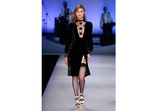 Smokings e ternos ajustados são complementados por poderosas saias com fendas profundas. Nos tecidos: rendas, jacquard, cetim duchese, chifon de seda pura e o veludo – grande novidade da temporada. Tudo pensado para as clientes mais noturnas, sedutoras e elegantes. Os sapatos são uma parceria com a Cecconello, marca comandada por Anderson Furlanetto.