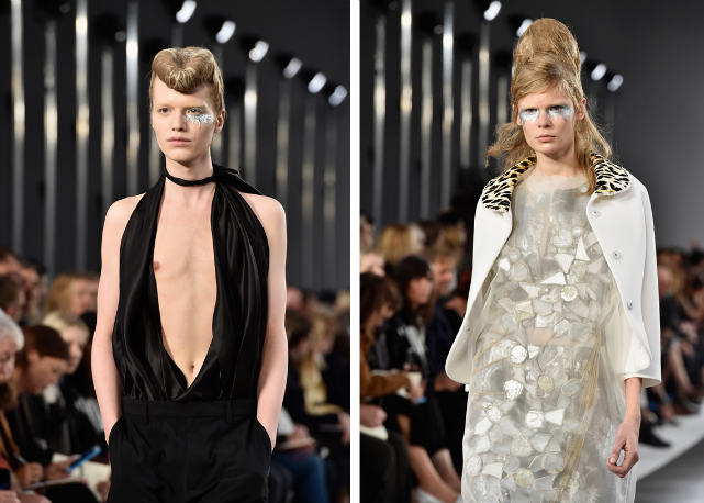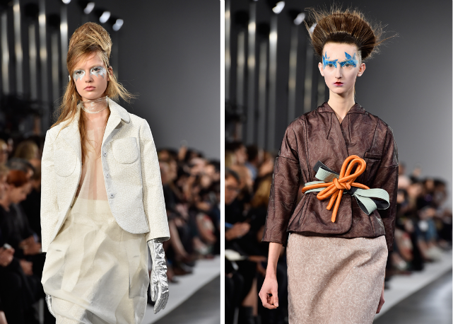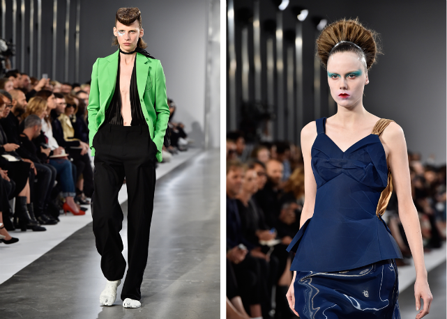 Excêntricas na essência, são roupas que carregam paradoxos recorrentes na moda de agora: peças que combinam ricos tecidos vistosos com materiais brutos, não raramente com efeito futurista – cacos de espelho penduradas em correntes, combinações de cores inusitadas e quimonos com modelagem de roupas do anos 1950. Soa fantasioso, de fato, mas o efeito é bastante comercial. Principalmente quando em temas quentes do momento, como as dicotomista entre masculino e feminino, novo e velho, decorações frívolas com outras funcionais.