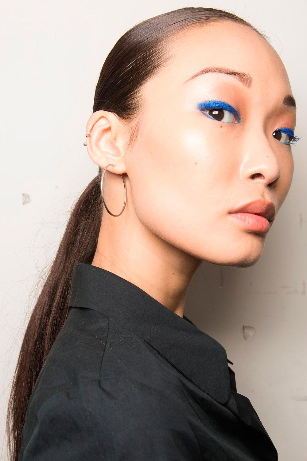 Azul é a cor mais quente na maquiagem da estilista Pamella Roland. Faça um delineado poderoso na pálpebra móvel e, na linha inferior dos cílios, apenas um toque sutil até a metade do olho, de dentro para fora. Veja produtinhos: