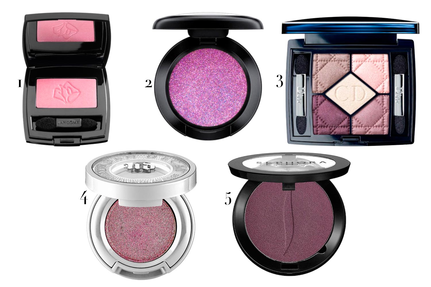 1. Lancôme; 2. M.A.C; 3. Dior; 4. Urban Decay; 5. Sephora Collection – Fotos: Divulgação