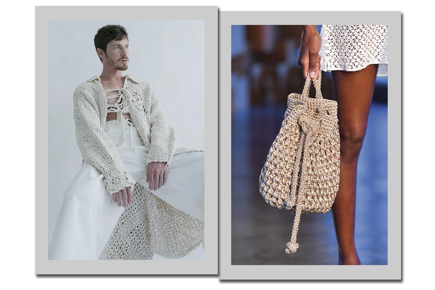 Dois talentos – David Lee, com seus looks para todos os gêneros, e a alma artesanal e poética da marca de acessórios Catarina Mina – se unem e abusam de técnicas manuais como crochê e tricô para trazer história às peças. Pitada de sentimento que Bazaar ama!