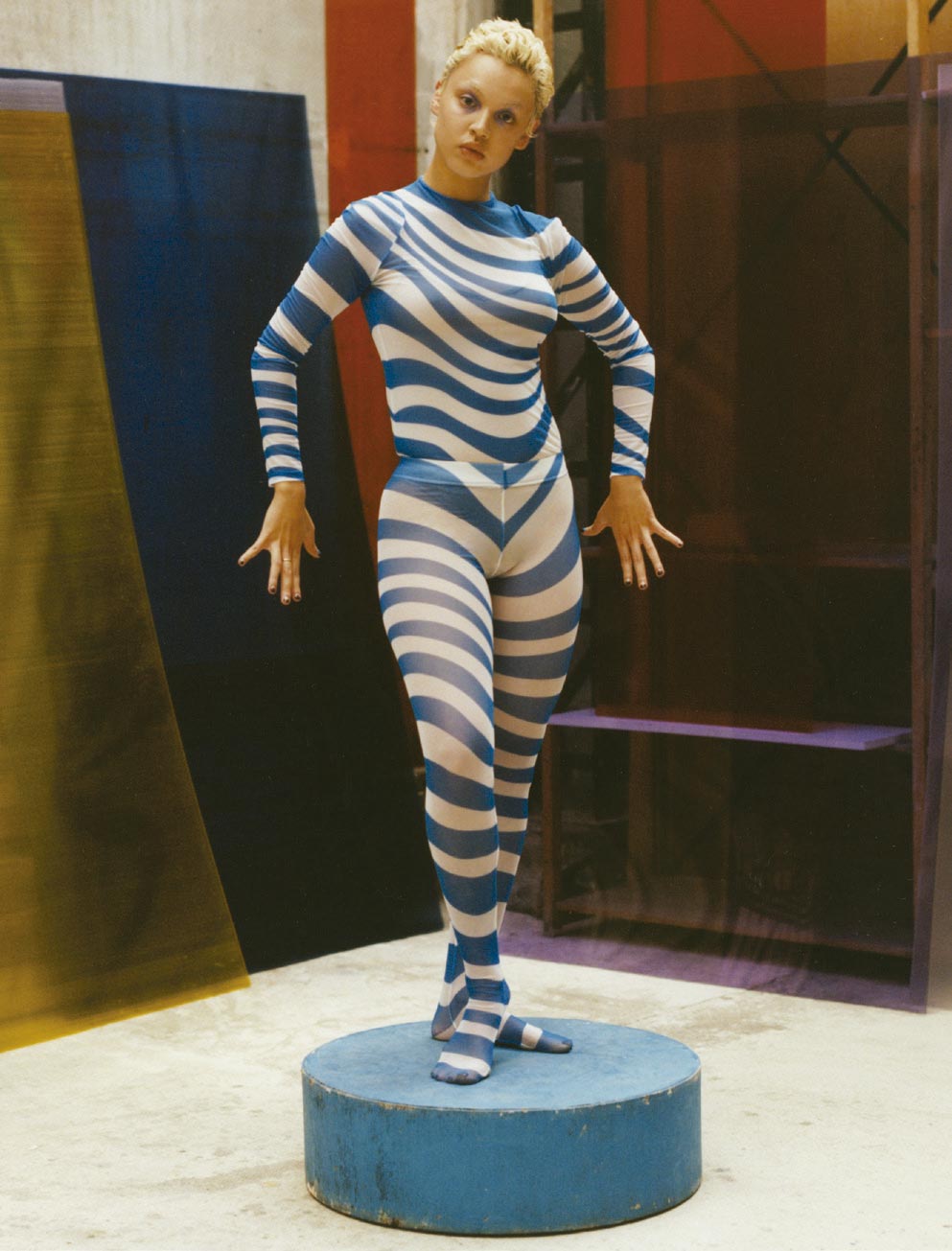 “É como ser um pintor ou criar esculturas em movimento”, explica. “É um processo lúdico e contínuo. Uma coleção começa onde a outra acaba. Acho importante ter um fio condutor”. Enquanto marca pequena em uma capital recheada de grandes maisons e conglomerados de luxo, ele valoriza coerência. “Minha primeira coleção foi muito conceitual. Hoje, compreendo o poder do design comercial, de ver minhas peças sendo usadas na rua, mas não abro mão do lúdico”, ele reforça, aumentando o tom de voz em meio à trilha sonora do bar: o hit de 1986 “Voyage Voyage”, da cantora francesa Desireless.
