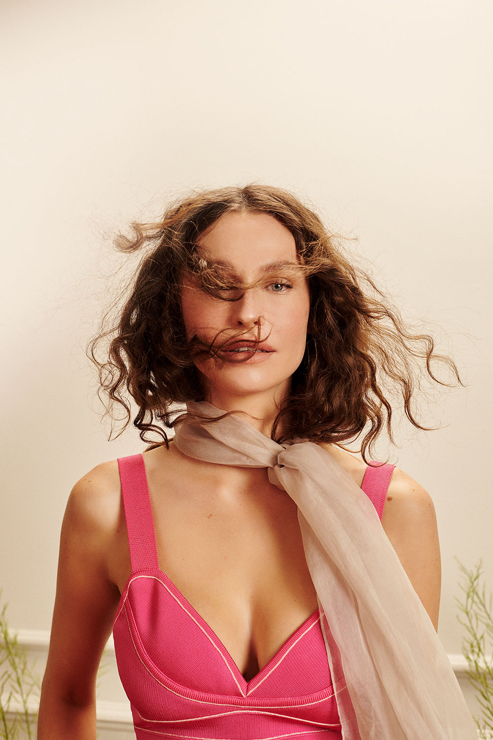 Para esta coleção, a Maria Filó apostou em uma cartela de cores que intercala tons vibrantes, como o rosa hibisco e o verde quartzo, além dos clássicos e atemporais off white e preto. Para cada tecido a label elegeu um shape diferente; as rendas leves deram vida às saias evasés com bases lisas e coloridas; já os desenhos de máquina criaram saias com modelagens ajustadas e babados. Tecidos mais estruturados compuseram peças de alfaiataria estruturada com pespontos contrastantes e o canelado tradicional foi explorado em shapes retos complementados com aplicação de franjas manuais.