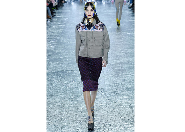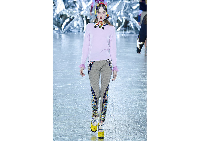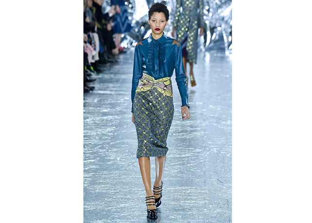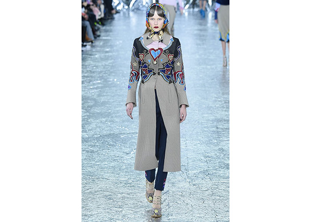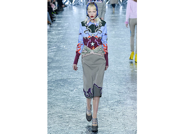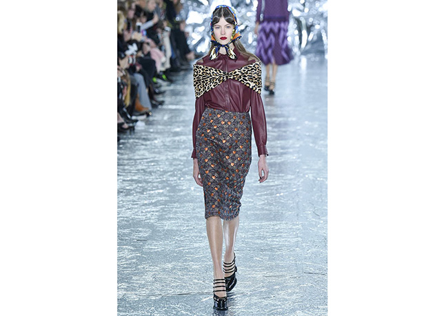 O universo country encontra o charme das princesas no inverno de Mary Katrantzou. Os cowboys são representados em estampas de camisas e jaquetas que se unem a peças sofisticadas e femininas como saias midi e calças cigarrete – além do bloco de plissados mais que charmosos. O mix de prints é o carro-chefe da estilista grega em toda coleção, e desta vez ela mistura fofuras como poás, corações e estrelas a animals como píton e, a já muito vista na temporada, onça. Amarrações trouxeram foco para os ombros e cintura, tudo arrematado com lenços nos cabelos. Para contribuir com o combo de tendências, efeito lingerie, pelúcia e couro. Veja a galeria!