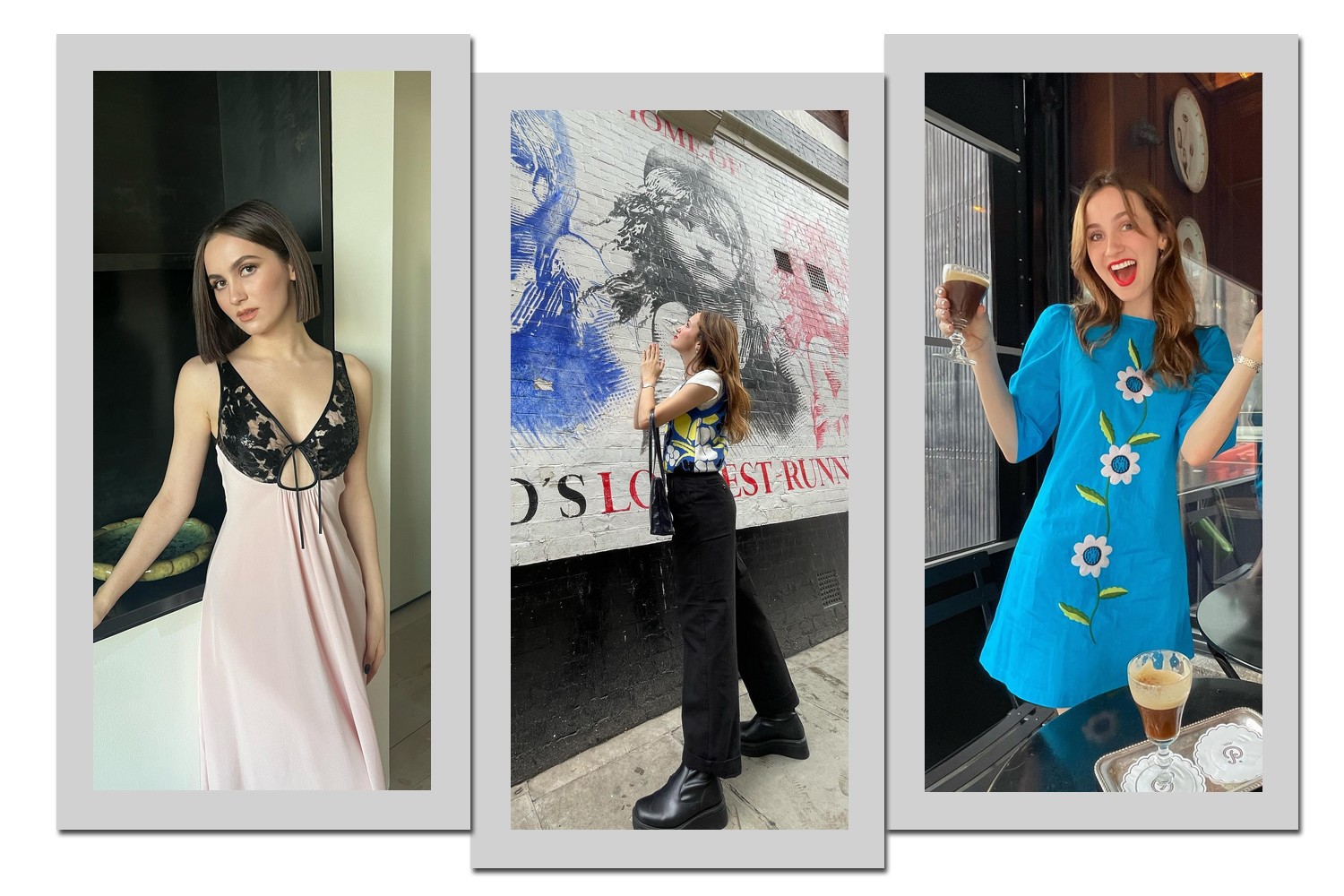 Seja com vestidos românticos e estampados ou com calças amplas e camisetas estampadas, a atriz acrescenta seu estilos nos acessórios, como bolsas e óculos de sol.