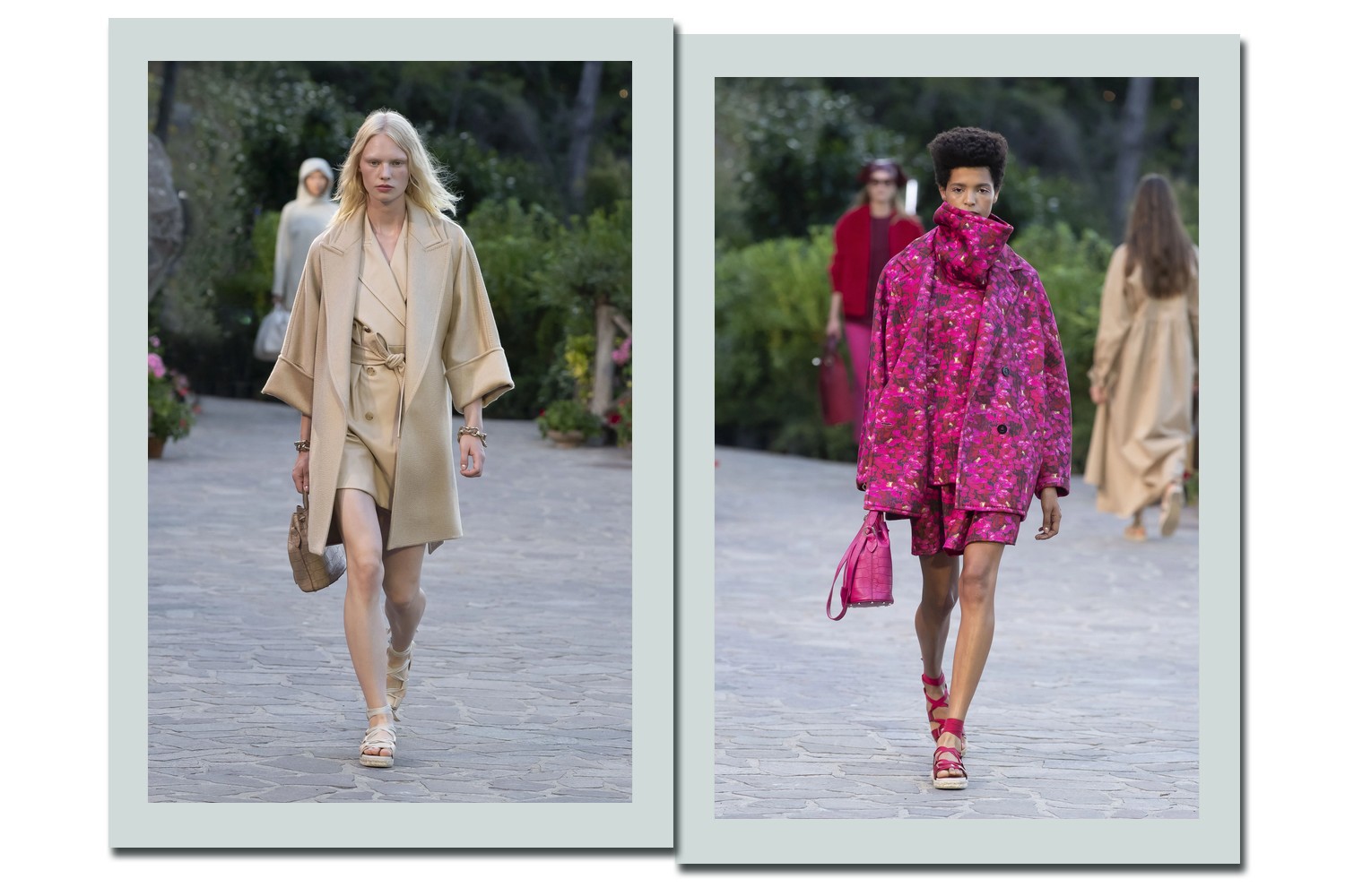 Uma boa forma de criar looks monocromáticos mais interessantes é apostar em peças com lindos detalhes. No resort 2022 da Max Mara, peças com golas altas – que contrastam com outras formas, grandes mangas e acessórios chamativos são algumas das características que se destacam.