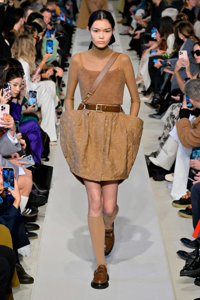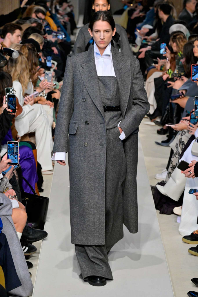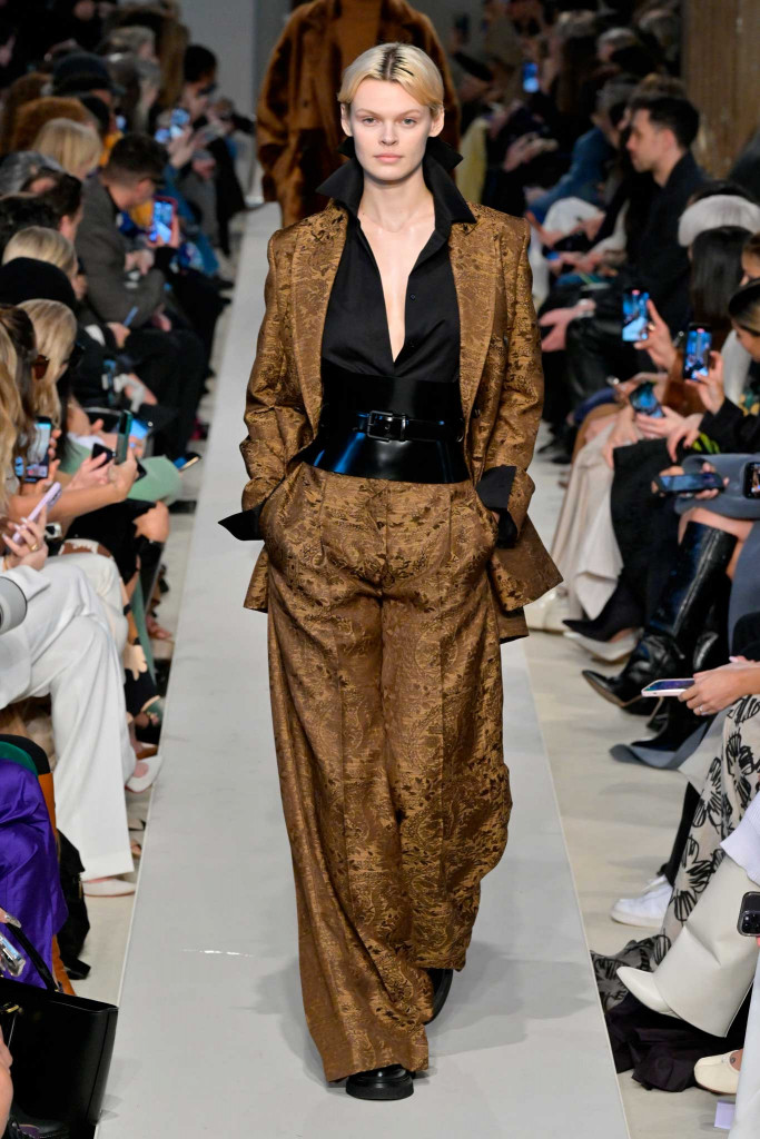 No segundo dia da semana de moda de Milão, a MaxMara surgiu com uma novidade inusitada desde a última temporada: a silhueta marcada por cintos e “cintões”, pretos e marrons, que dividiram ao meio quase todos os 47 looks. Fashionistas vão lembrar que, há exatamente um ano, a marca já havia explorado a tendência de forma bem mais tímida!