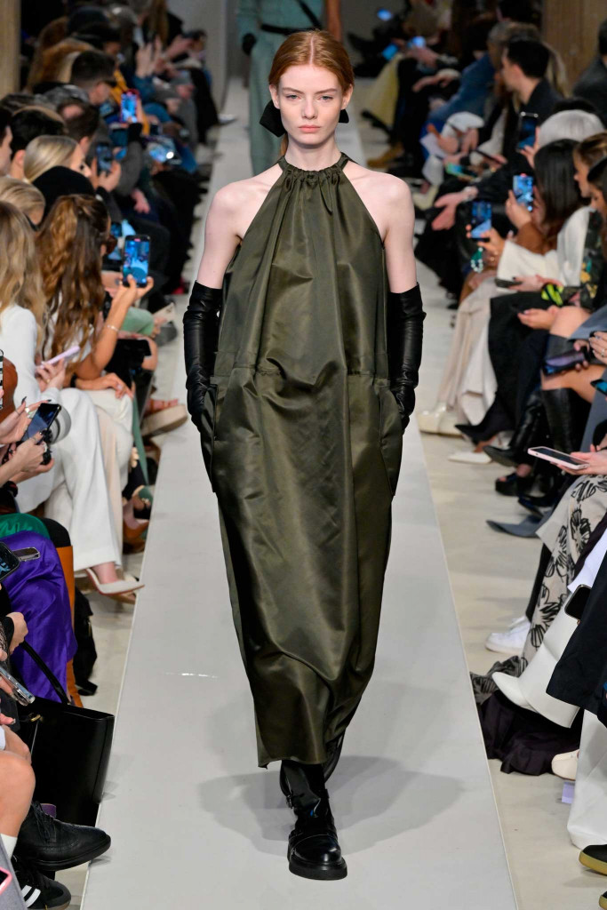 Dessa vez, Ian Griffiths, na casa desde 1987, também trouxe de volta a paleta de pastéis em looks monocromáticos, como já havia ensaiado em setembro. O twist de agora, fácil de identificar, são tons menos “chiclete” e mais invernais, incluindo versões de rosa, lavanda e turquesa.