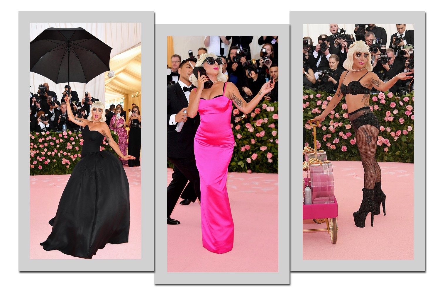 Uma das anfitriãs da edição de 2019, Lady Gaga fez uma das entradas mais marcantes ao ir desmontando seu visual e apresentando quatro looks no total – todos assinados por Brandon Maxwell. A dramaticidade da performance é a cara da cantora pop, que sempre se destaca por onde passa.