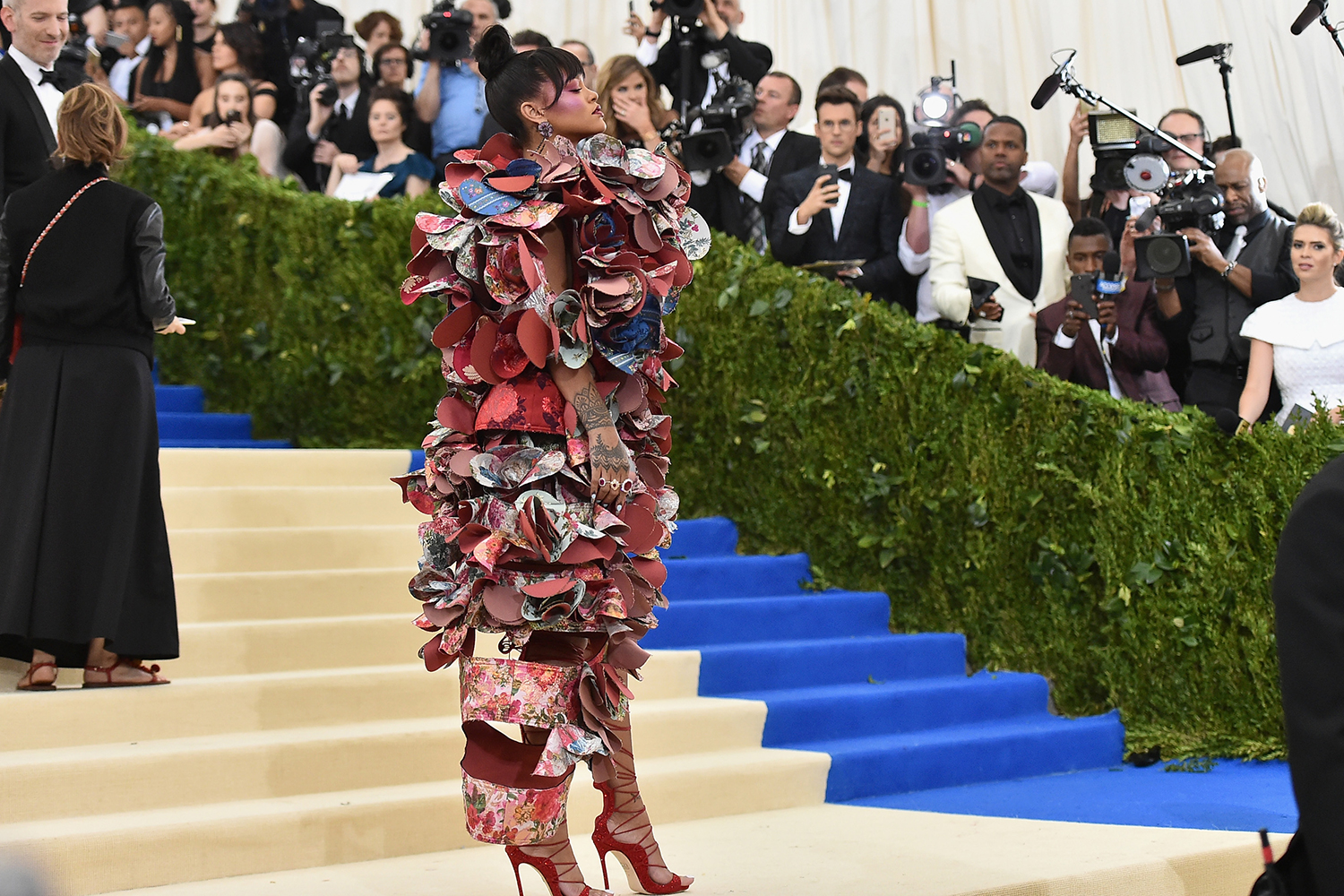 Sempre um dos ícones mais esperados do Met Gala, um dos melhores looks de Rihanna foi o vestido de Comme des Garçons.