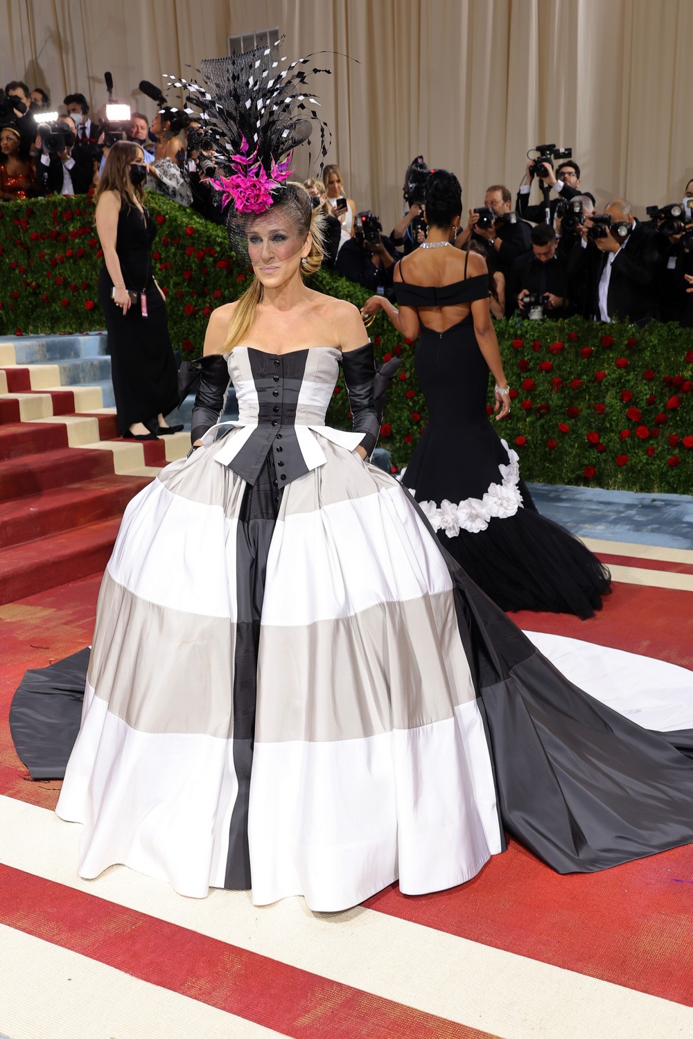 Sarah Jessica Parker não abriu mão de trabalhar com um designer que tem se destacado no atual cenário da moda norte-americana, mas também não deixou referências históricas de lado. A atriz se uniu a Christopher John Rogers para criar um vestido condizente com o dress code do evento: white tie.
