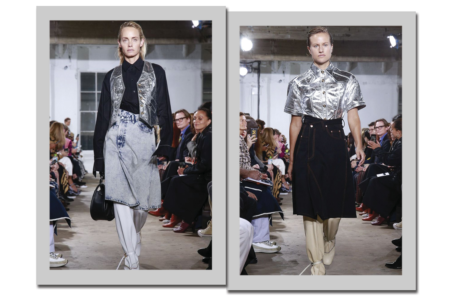 Proenza Schouler apresentou peças para arrematarem o visual. O colete quebra o bloco preto e traz luz, enquanto a camisa de mangas curtas já carrega por si só o estilo do look.