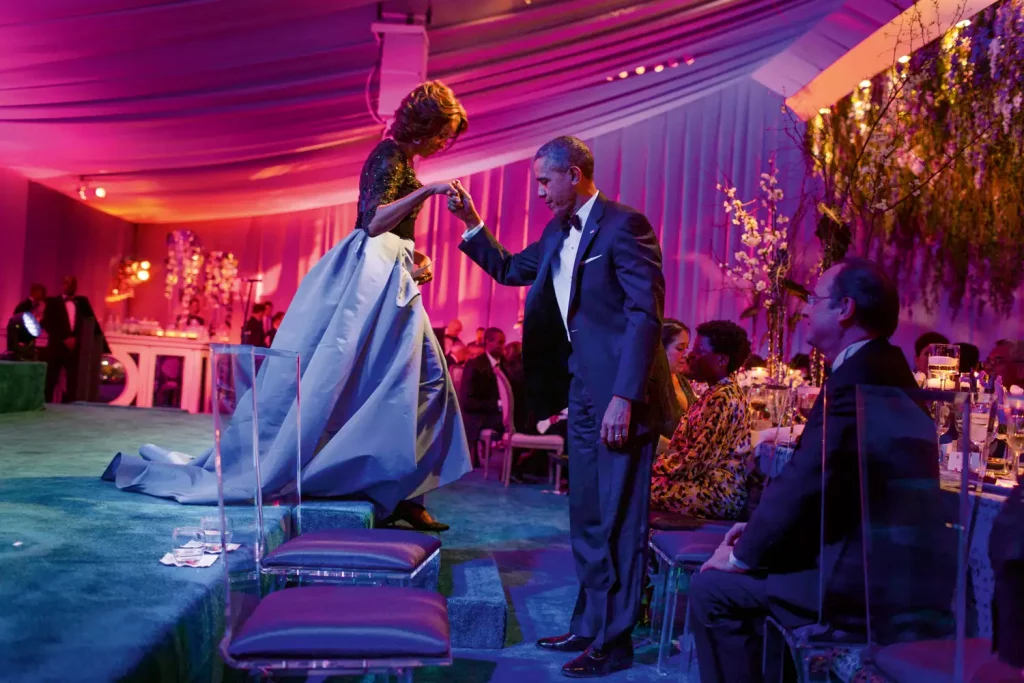 Como relembra a publicação, no início de 2009, Michelle Obama usou casaco e vestido amarelo-claro de Isabel Toledo no Dia da Posse e, à noite, um modelo branco de um ombro só de Jason Wu. As escolhas inauguraram um protocolo próprio: estilistas norte-americanos, leitura fresca do cerimonial e uma silhueta limpa que marcou um começo. Ao mesmo tempo, sua imagem entrou no redemoinho do escrutínio público; o corpo atlético virou pauta, os cardigãs viraram rótulo e o cabelo se tornou ponto político. “Eu sabia que não poderia oferecer nada mais até que o país me conhecesse”, disse em entrevista a ABC. Durante os anos na Casa Branca, ela manteve os fios lisos para não deslocar o foco do trabalho e, ao lado do cabeleireiro Johnny Wright, aprendeu caminhos de proteção com perucas e extensões, preparando o terreno para um futuro de mais liberdade.