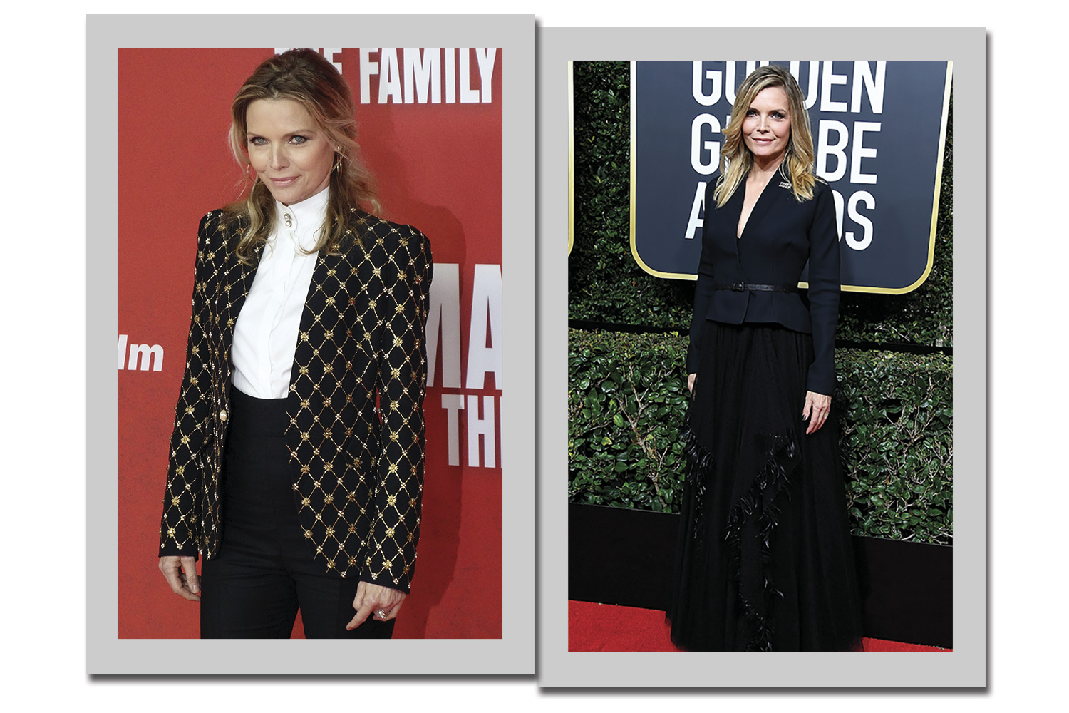 O clássico pretinho básico é a pedida certa para a atriz. O segredo de Michelle é apostar em modelagens ricas em informação de moda e elegância. O macacão é peça must-have para os fashionistas e deve ser usado sim no red carpet. Os vestidos de comprimento midi foram arrematados por cintos na cintura, agregando estilo aos looks.