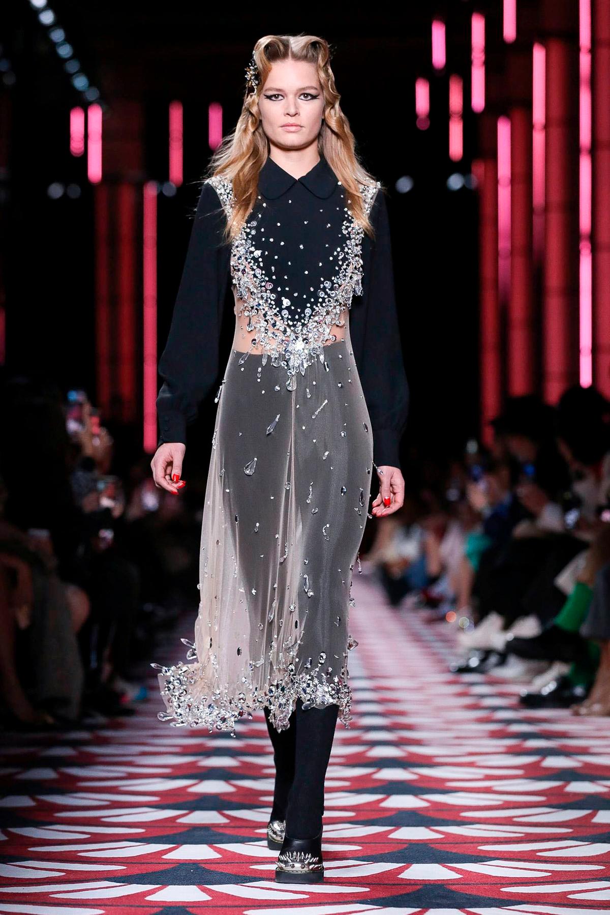 Lustres inspiram bordados de cristais em organzas, e sapatilhas de bico fino comprovam o mood softpower. Presente até mesmo nos casacos militares com altas plataformas.