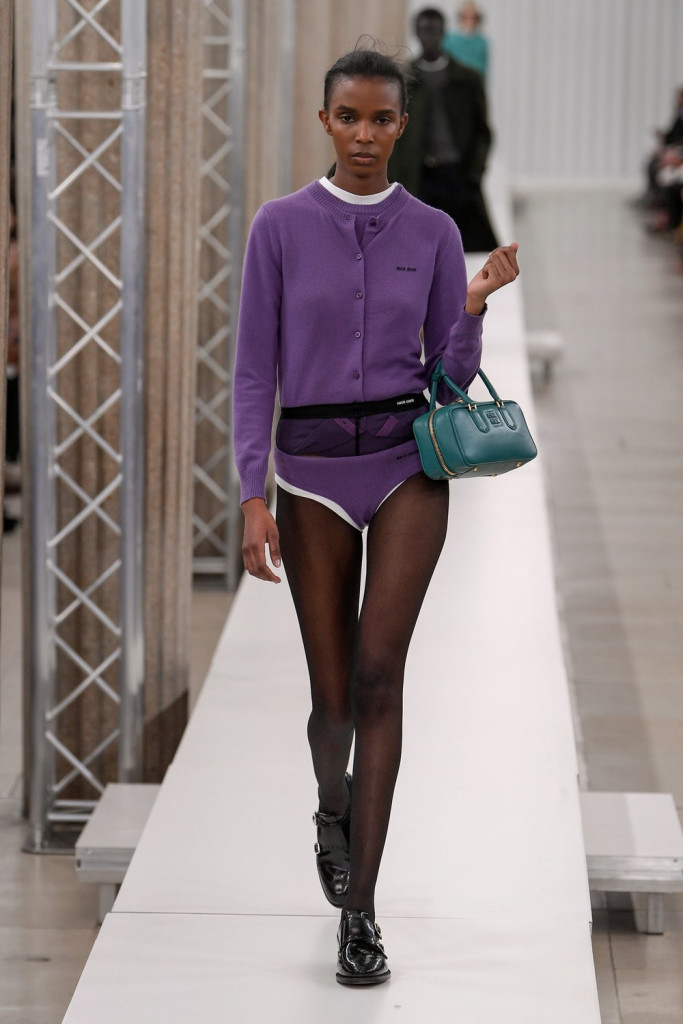 Segundo a marca, no inverno 2023, a fashionista vai se render à saia lápis, mas com a rebeldia de deixar o cós da meia calça visível; vai adotar os tons terrosos, mas em camadas de pesadas jaquetas com diferentes texturas; e, claro, vai deixar as pernas à mostra, mas não com a minissaia que já apareceu em seu feed e, sim, com uma nova aposta da marca: as coloridas e brilhantes calcinhas.