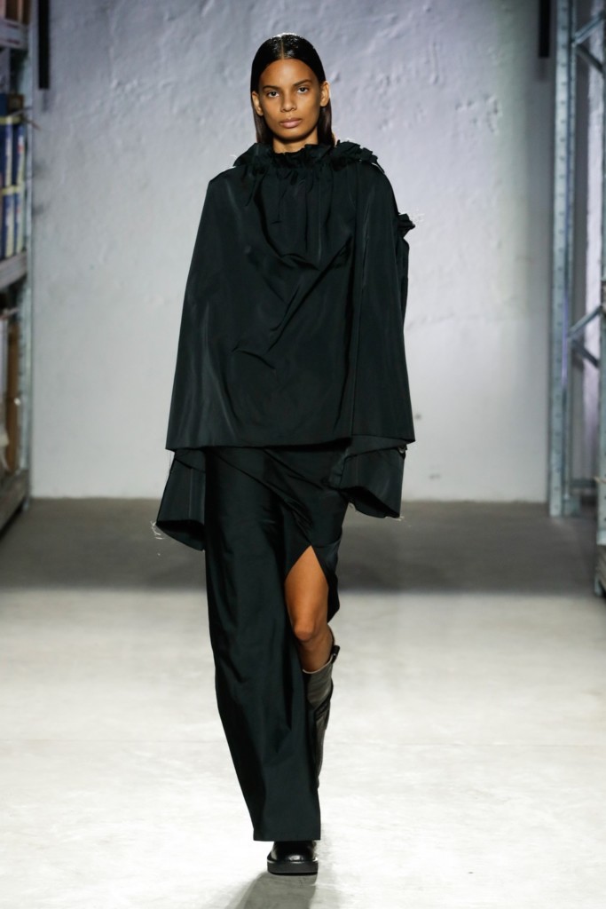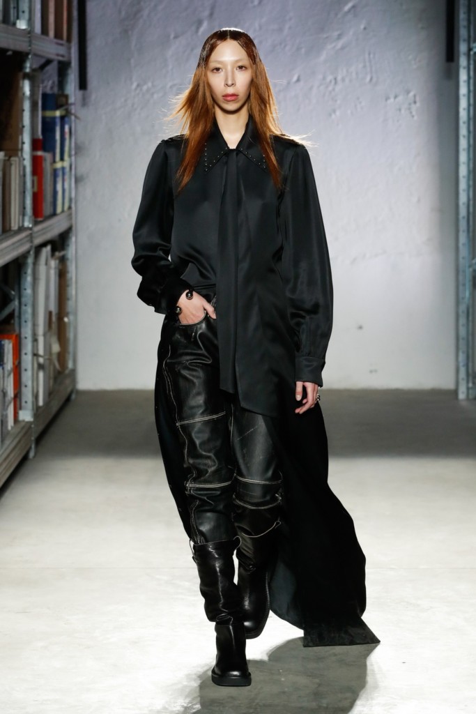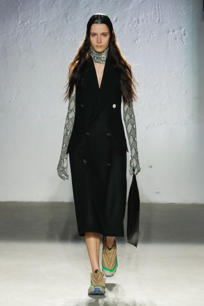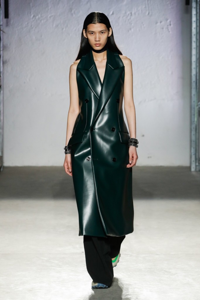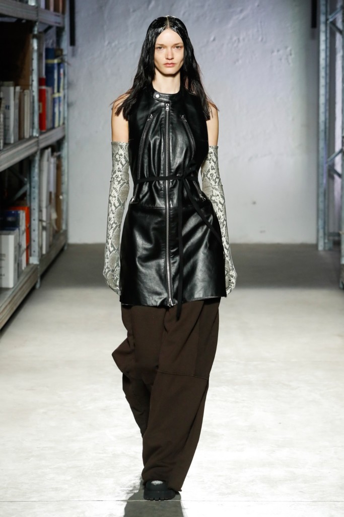 Coletes sem mangas, peças em couro verde escuro, acabamentos metálicos e um top que imita uma cobra enrolada no corpo foram os destaques da apresentação, animal cujo padrão foi reproduzido em texturas de peças jeans. O desfile também apresentou a colaboração com Salomon, marca francesa de artigos para prática de esporte, principalmente na neve. A união das duas labels resulta em tênis coloridos e vívidos.