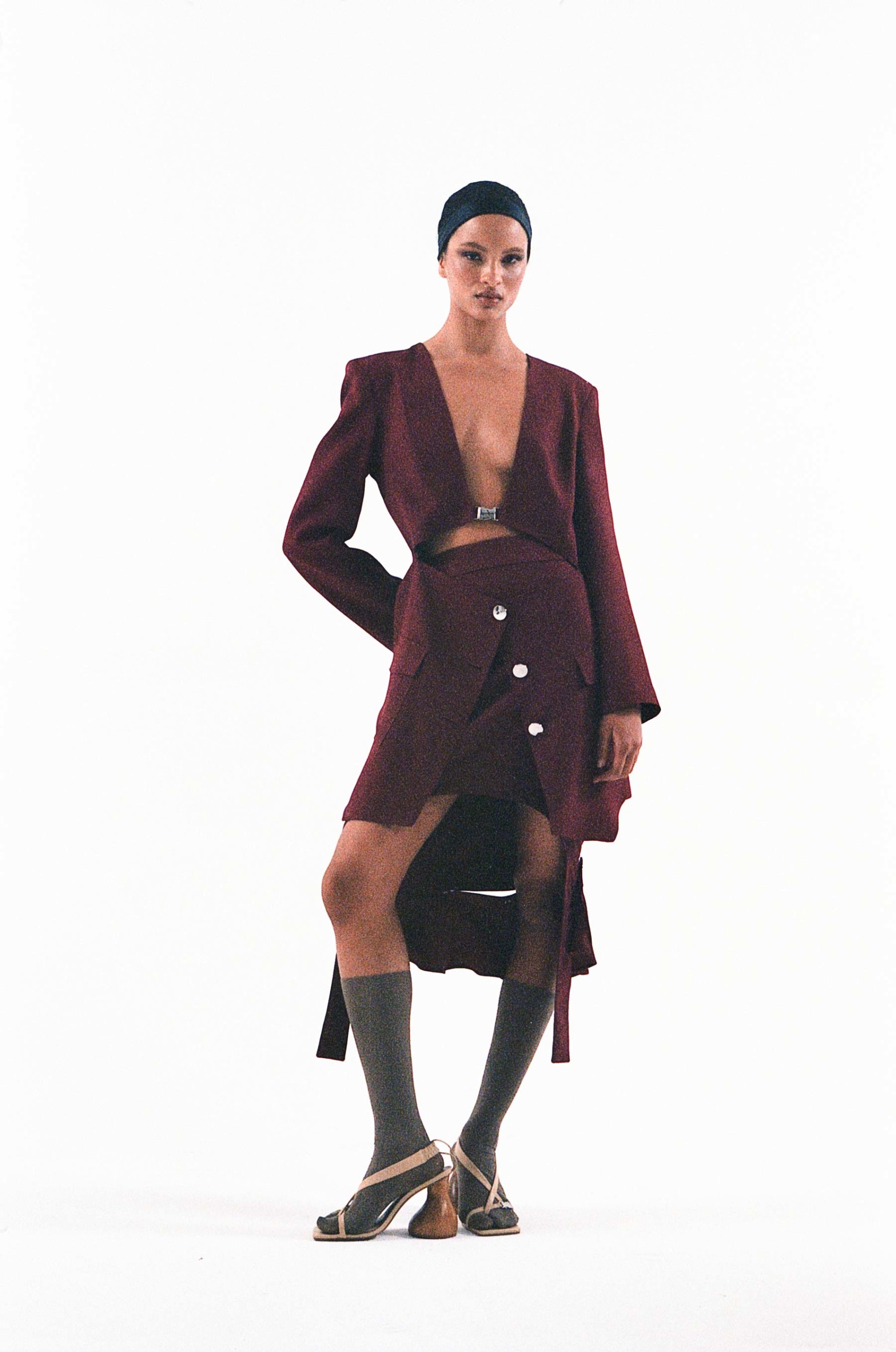 Ao se inspirar em formas orgânicas e nas linhas desconstruídas e precisas de suas silhuetas, André Boffano, diretor criativo da Modem, fomenta o rompimento de shapes e volumes convencionais por meio de desenhos criados através de tiras transpassadas e de saltos artesanalmente esculpidos na madeira.