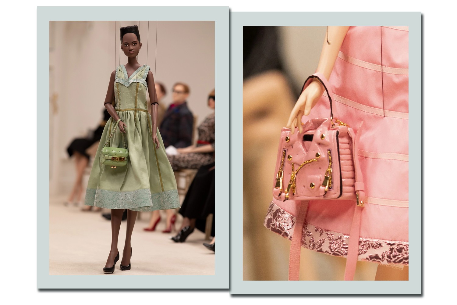 Sem deixar seus códigos mais atuais de fora, as bolsas mais reconhecidas da marca, incluindo a Biker Bag, acompanharam as peças – e conseguiram ficar ainda mais fofas na versão para bonecas. A Moschino conseguiu convidar todos que assistiram à apresentação a viajarem no tempo e na imaginação sem sair de casa. Veja dez coisas que amamos na coleção: