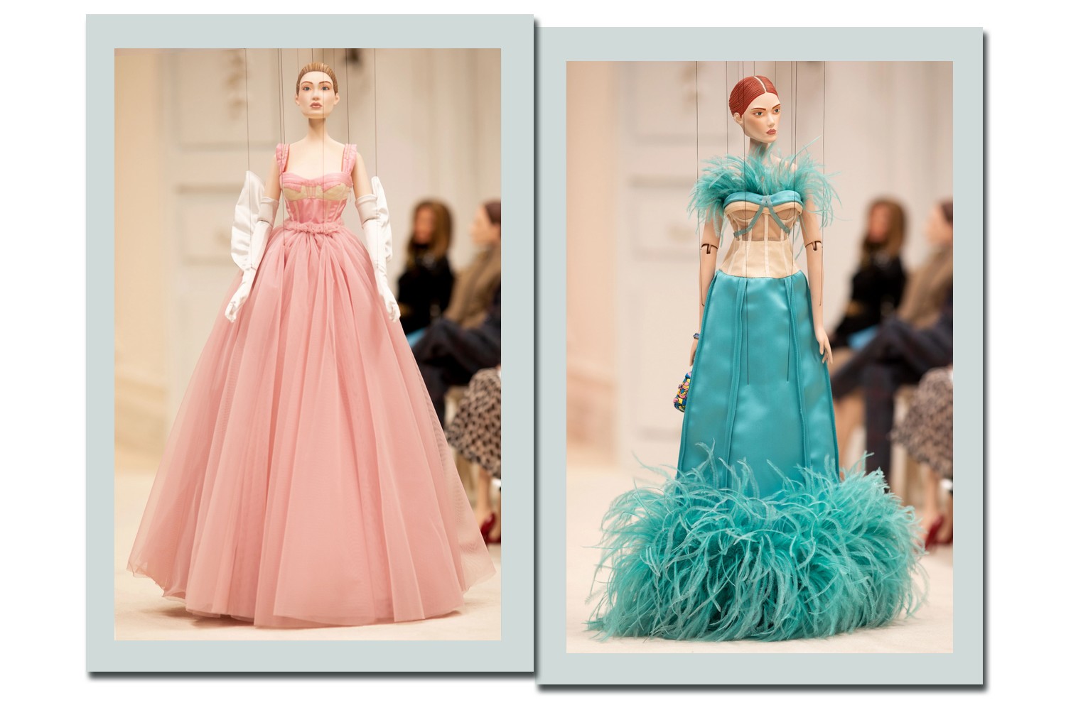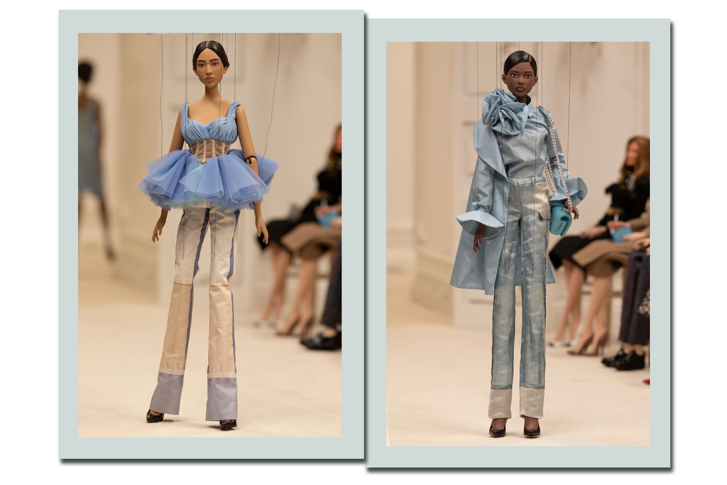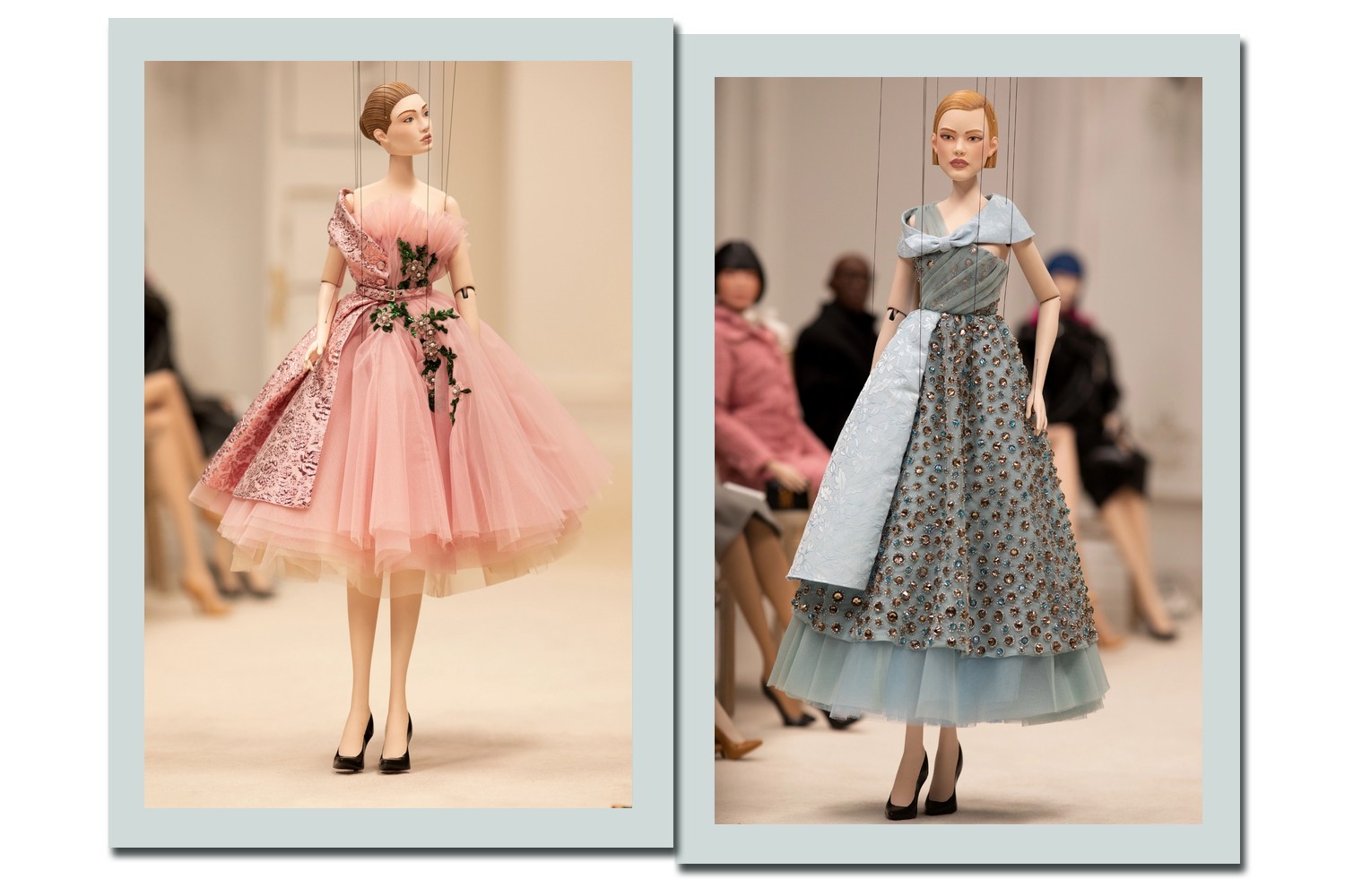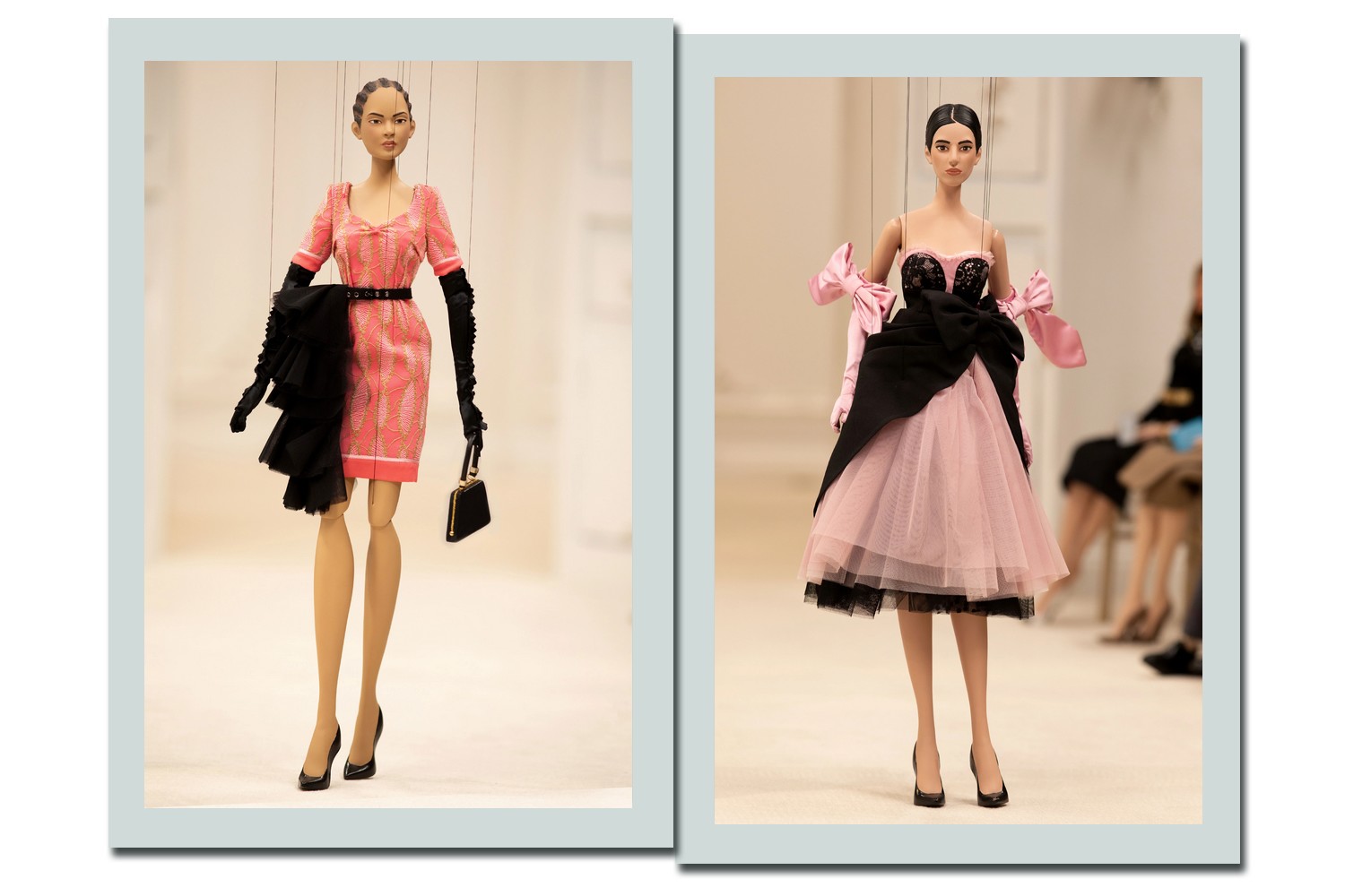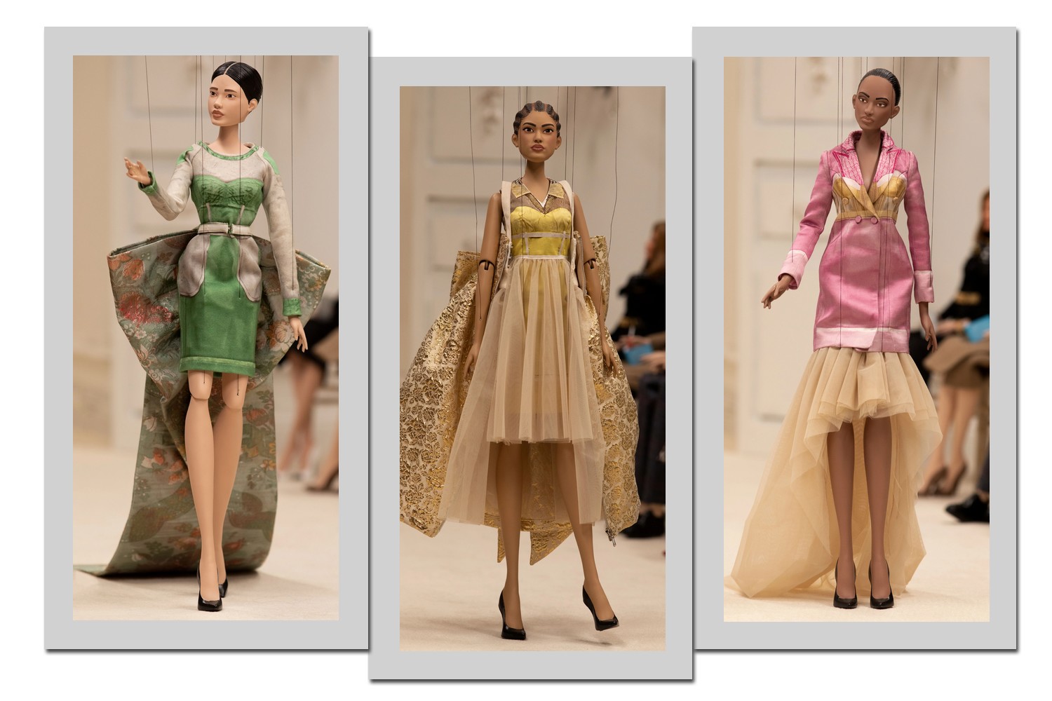 Os fantoches usados mediam pouco mais de 76 cm e, mesmo assim, as roupas apresentadas ganharam bordados extremamente delicados.