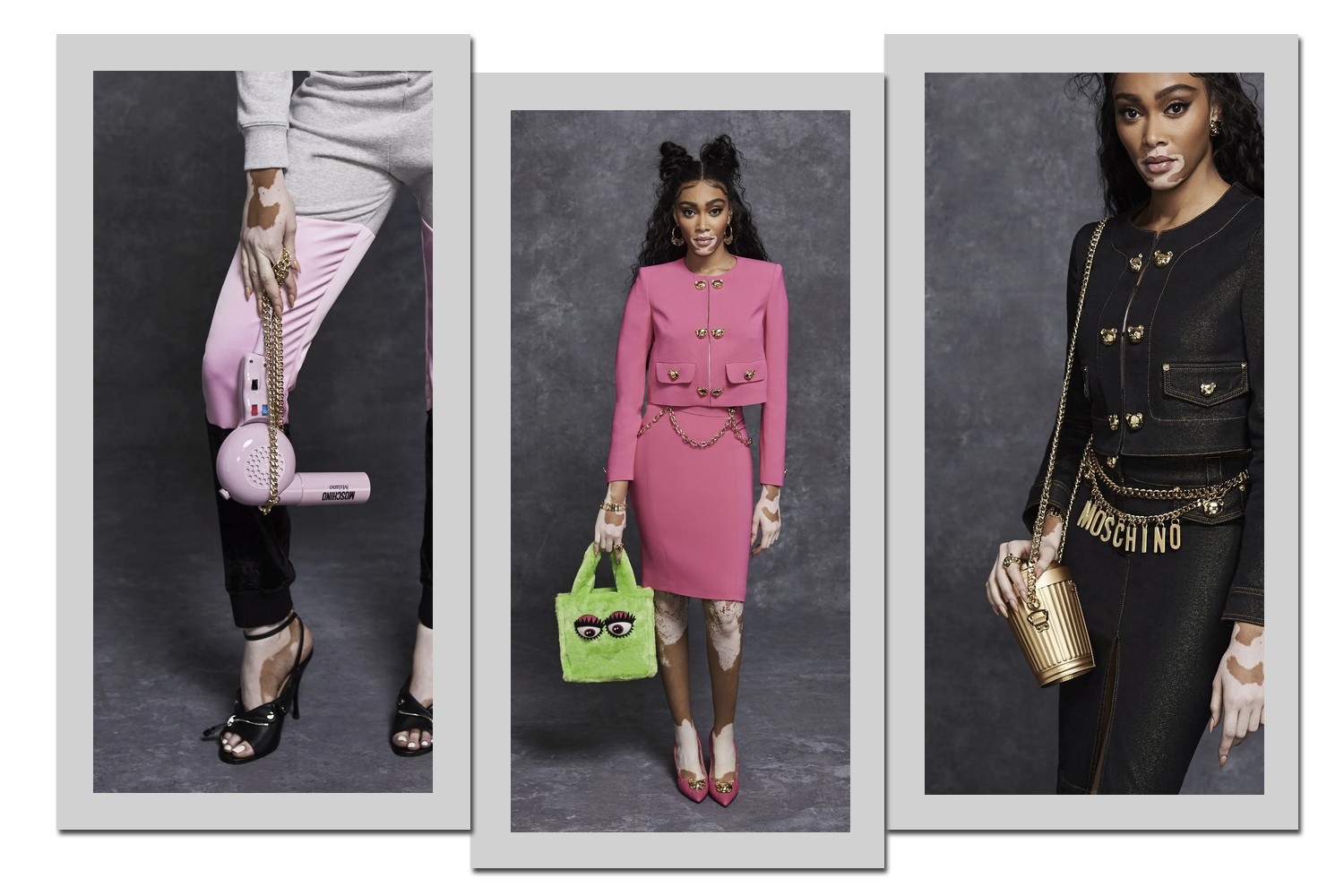 Uma das marcas registradas da Moschino são os acessórios superdesejados e divertidos, que, apesar de não serem tradicionais, encantam por tirar qualquer visual da normalidade. Na coleção de pre-fall 2021 da grife não poderia ser diferente. Com lookbook estrelado por Winnie Harlow, reúne mix de estampas, jeans, detalhes volumosos e cores intensas, mas, mais uma vez, são as bolsas e sapatos que roubam a cena.
