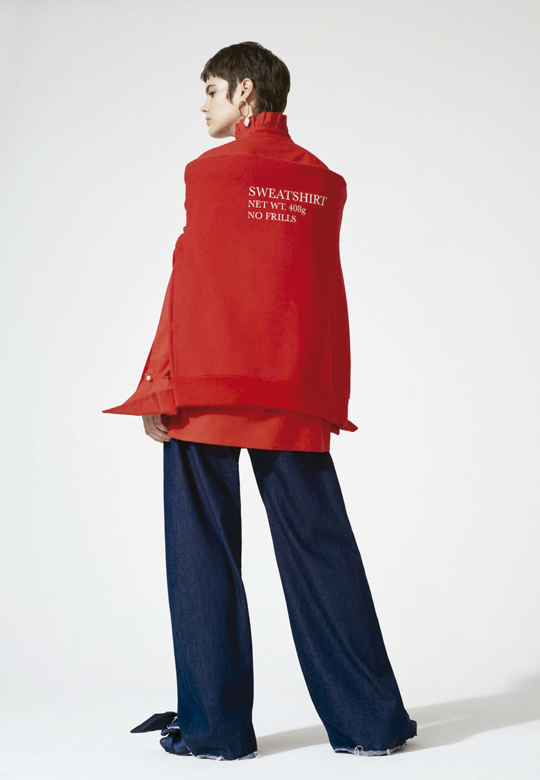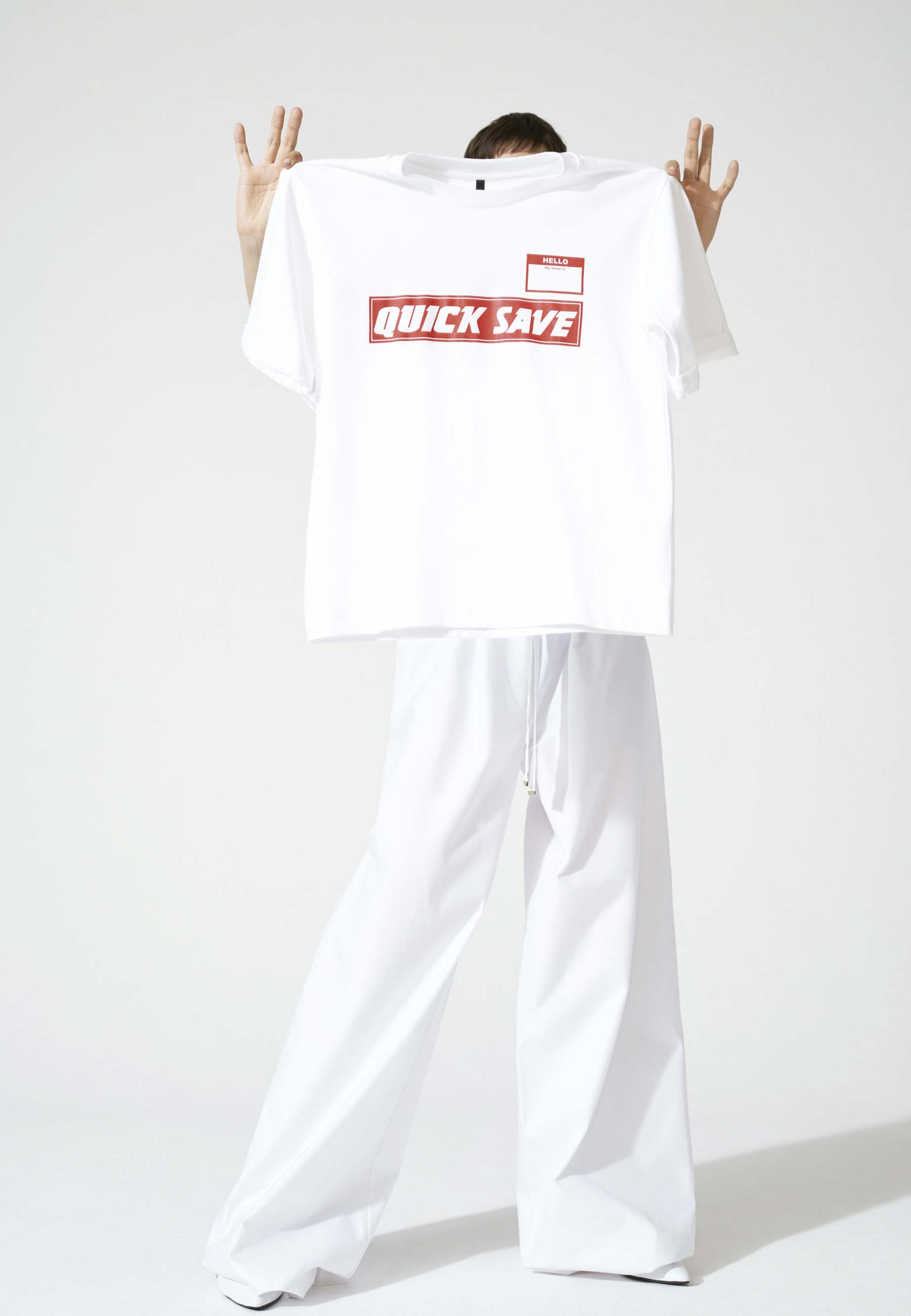 “Queria criar um produto verdadeiramente honesto, exatamente o que dissemos que ele é, sem mentiras”, reforça a diretora criativa sobre o conceito vindo da indústria varejista de bens de consumo básico, de onde ela trouxe, ainda, referência para o visual bold dos slogans que estampam as camisetas, como “Quick save” e “No artificial content, No frills, net wgt 177g”.