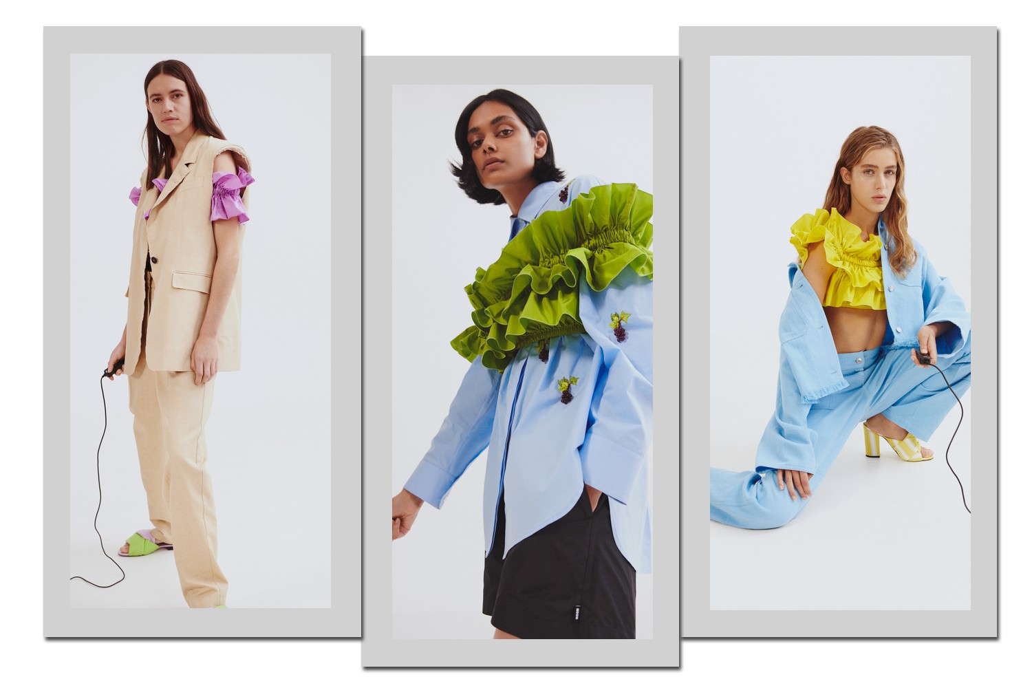 A peça queridinha entre as mulheres convidadas para compartilhar suas histórias com a MSGM – e que também ficaram responsáveis por escolheres seus looks – foi o top de babado. O modelo aparece em diferentes cores ao longo da coleção.
