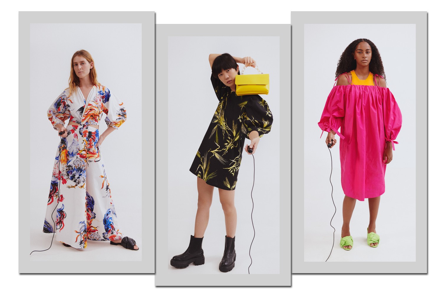 Com modelagens amplas e confortáveis, os vestidos foram incrementados com mangas bufantes.