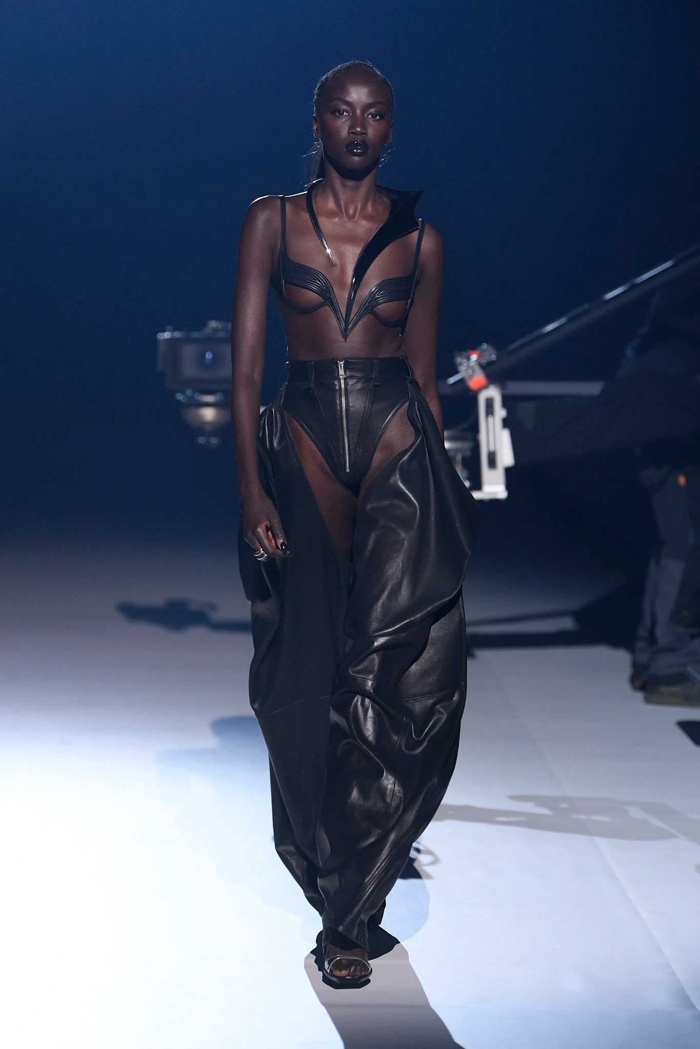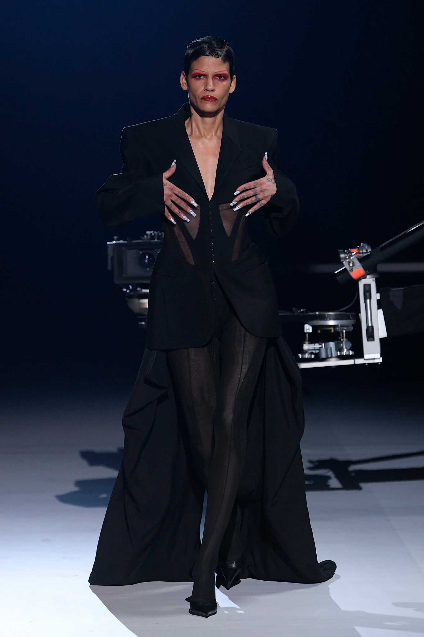 O retorno da Mugler às passarelas – depois de um hiato de dois anos preenchido com fashion films disruptivos – começou com um mix de agonia e alívio. O primeiro sentimento surgiu entre os convidados que, no último dia da semana de moda de Paris, atravessaram a capital francesa no frio de 0ºC até Grand Halles de la Villette, ao norte, para assistir ao espetáculo.