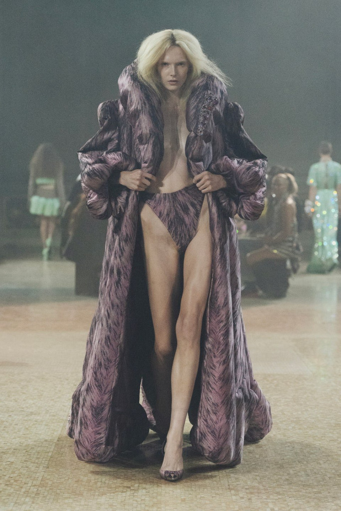 Na Area, comandada pela dupla Piotrek Panszczyk e Beckett Fogg, os instintos primitivos foram o ponto de partida que acabou em jeans. Os casacos de pele, que na história de evolução da moda já foram de peça utilizada como meio de sobrevivência a símbolo de status entre aristocracias, deram lugar a versão tecnológica de 2024 e suas alternativas.