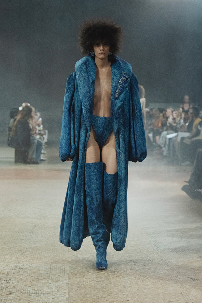 Numa viagem ao tempo com casacos glamourosos, botas e vestidos que ludicamente brincaram até mesmo com os Flintstones e os seus famosos ossos como acessórios de moda, a label chegou aos tempos de realeza, entregando um manejo primoroso da matéria-prima, que confundiu os olhos a cada look. Mas acredite: é tudo jeans!