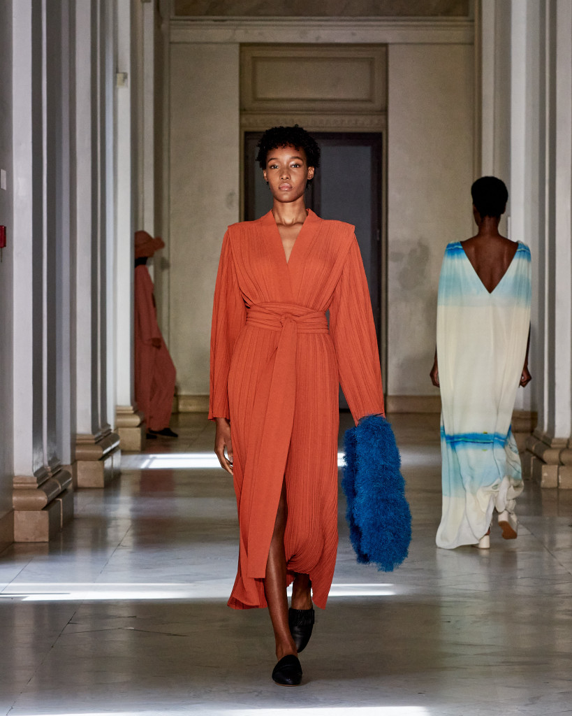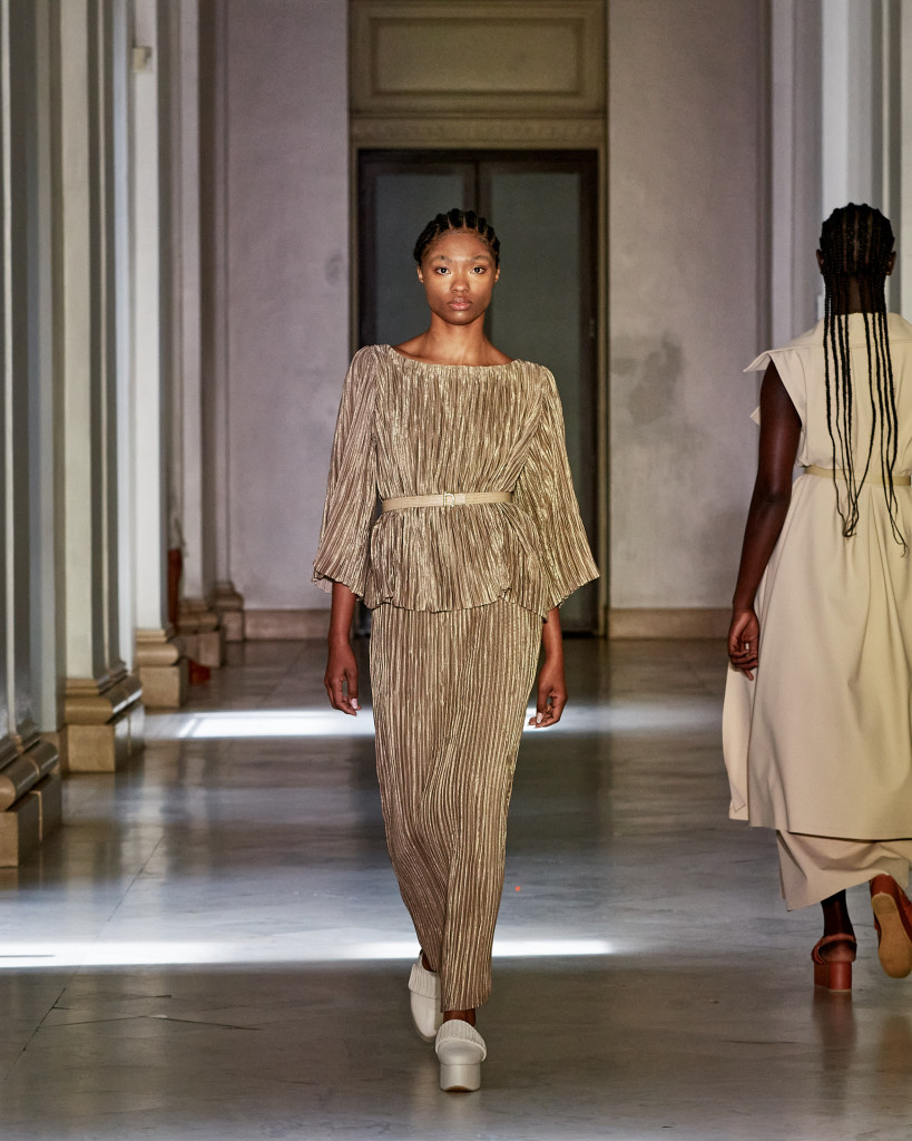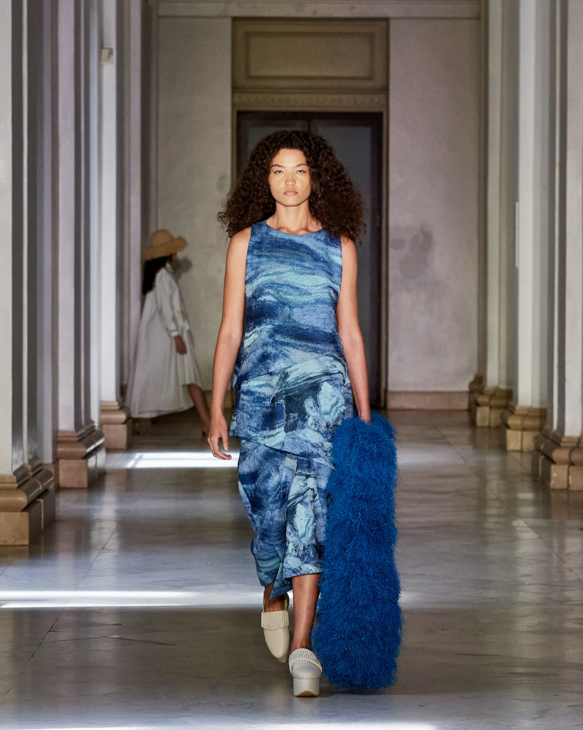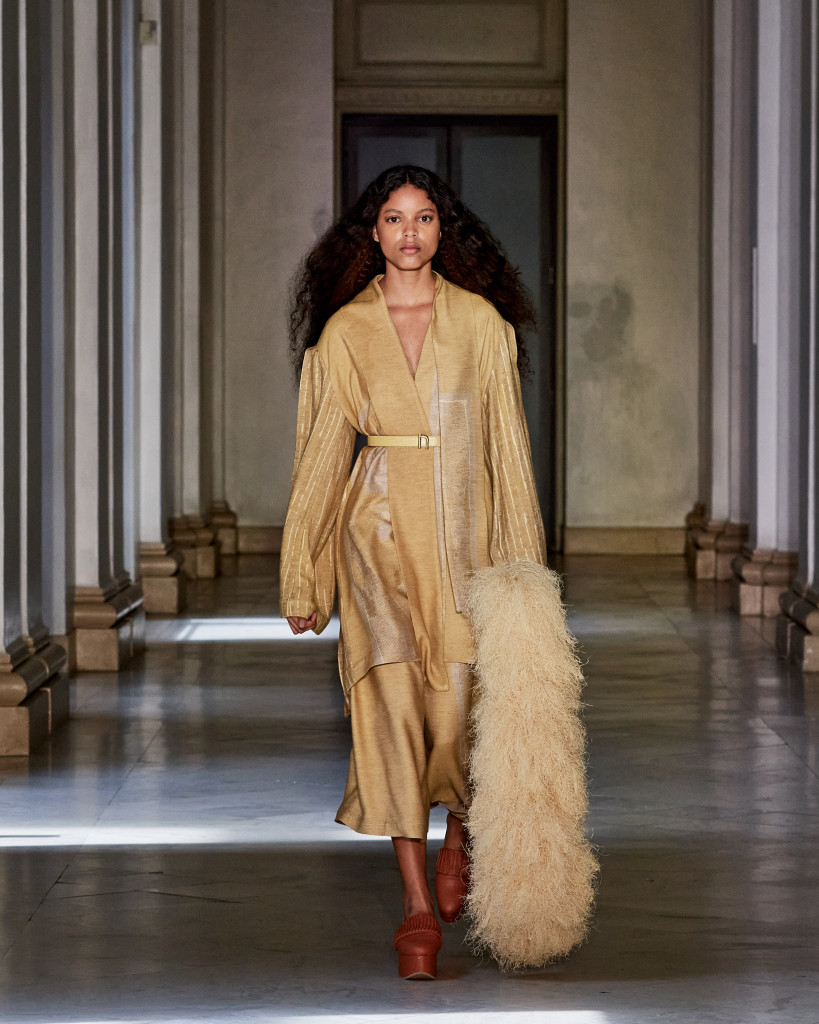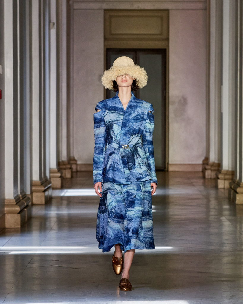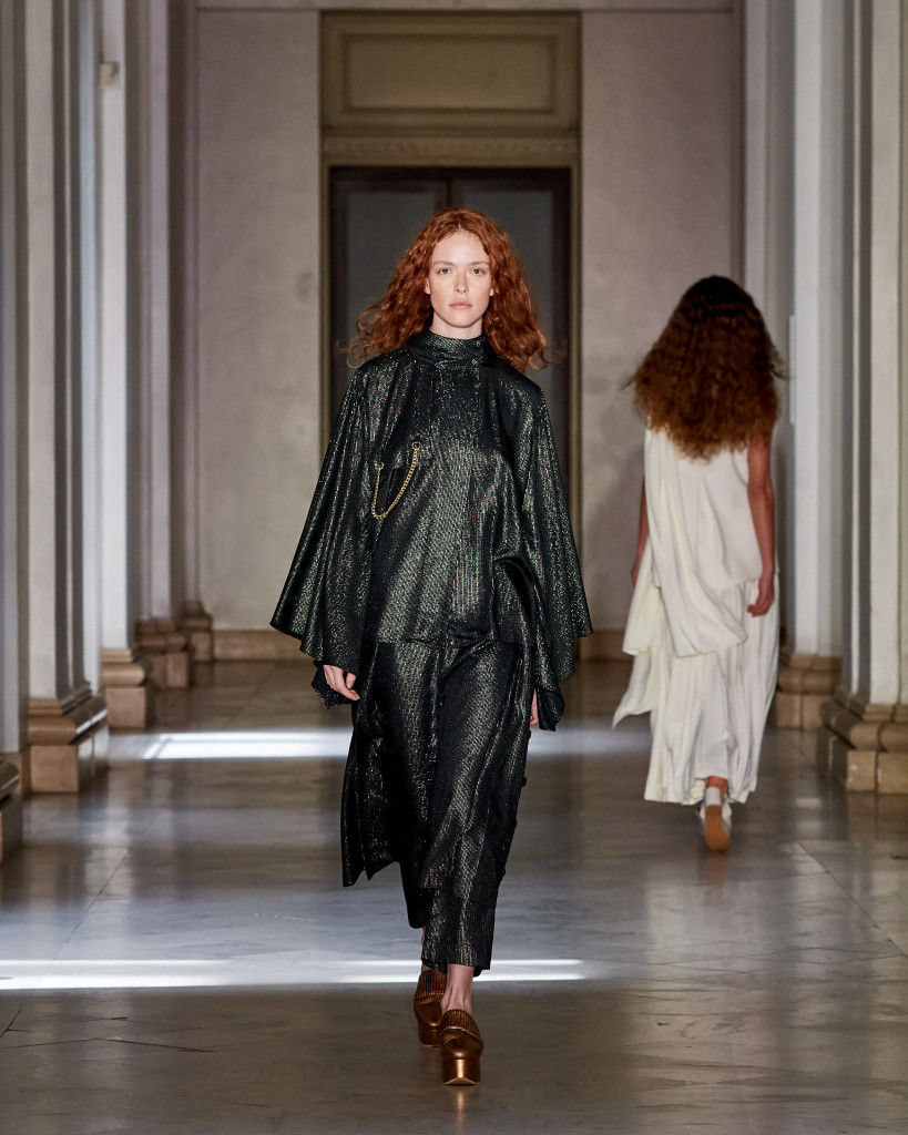 A narrativa era organizada e se dividiu em três momentos, descritos como “pérolas, andarilhos e âncoras”. No primeiro, a fluidez protagonizou ao lado de bordados com frases de autores diversos, como em um diário ambulante, enquanto, na segunda, a alfaiataria e as transparências tomaram a passarela. Tudo era artsy, sim, mas com a leveza que curou a “pretensão” discutida por Rafaella. O terceiro bloco, um pouco mais filosófico, materializou o “retorno às origens” em tons terrosos – mais uma ode ao poema de Kafávis sobre a viagem odisseica de Ulisses para sua casa em Ítaca.