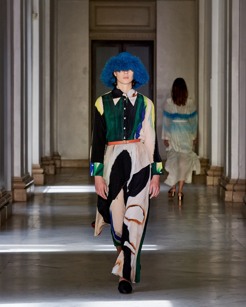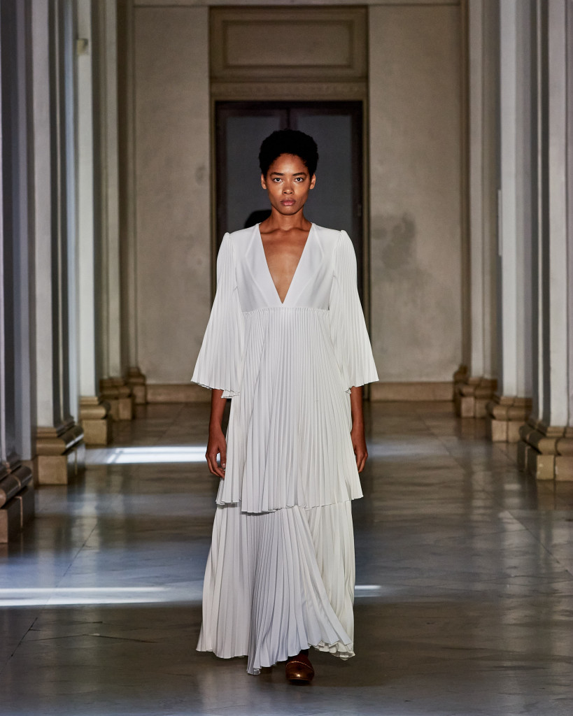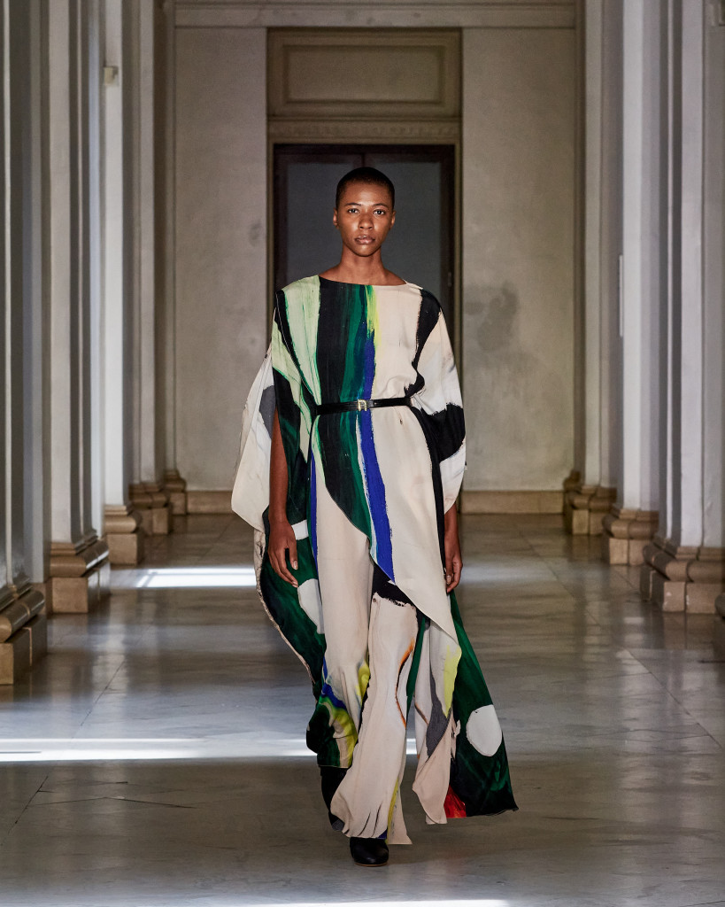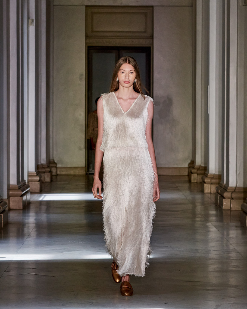 Para quem acompanhou de fora, talvez o adjetivo mais apropriado seja “ambiciosa”. Tudo prometeu ser grandioso. E foi. A locação, a lista de convidados, a trilha sonora e até as referências para as criações, escolhidas entre as obras menos conhecidas de Leonilson dos anos 1970 a 1990. Na passarela, o repertório não chegou literal. Para a estilista, a intenção era evocar a fragilidade e intimidade que ela mesma sentiu quando entrou em contato pela primeira vez com o trabalho do artista. Esse sentimento, aqui, se traduziu em bordados, estampas em seda pura, jacquards e os plissados e texturas que são assinaturas da Neriage.