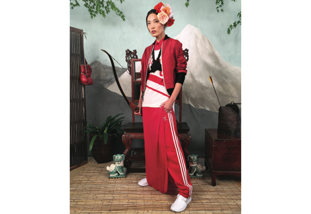CHINA Arlene Peng (Heffner Management) usa vestido de cupro craquelado e arnês Kenzo; tênis e calças Adidas; bomber jacket de seda Alexa Stark. Flores de papel feitas a mão (nos cabelos) da boutique Bella Flora, de Portland – Foto: Chris Hornbebker